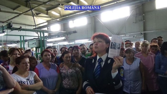 Vizita poliţiştilor de la compartimentul Analiza şi Prevenirea Criminalităţii la o fabrică de încălţăminte, situată în judeţul Brăila, a oferit angajatelor posibilitatea de a afla că violenţa, sub toate formele de manifestare, afectează dreptul la viaţă, integritate fizică şi psihică. Lovirea şi celelalte fapte agresive manifestate în familie, pe stradă sau la locul de muncă, influenţează negativ dezvoltarea familiei, precum şi randamentul la serviciu. "Angajatele fabricii au discutat cu poliţiştii despre urmările pe care un mediu familial violent le are asupra copiilor, despre modul în care aceştia din urmă, ajunşi adulţi, vor înţelege că trebuie să se poarte cu părinţii sau cu propriii copii. Li s-a explicat cum violenţa determină violenţă asupra celui care o exercită, cum agresivitatea se întoarce asupra agresorului, cum tolerând traiul într-un mediu violent, dezvoltarea personală şi a relaţiilor sociale sunt grav afectate", a precizat agent şef adj. Camelia Bucur din cadrul Inspectoratului de Poliţie Judeţean Brăila.