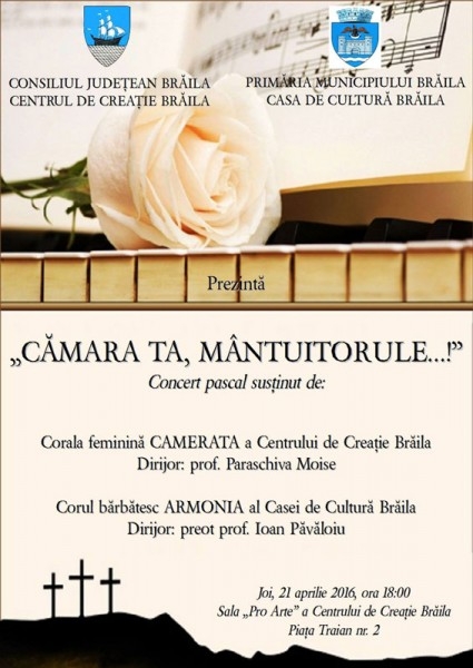 Joi, 21 aprilie, de la ora 18.00, la sala "Pro Arte" a Centrului de Creaţie va avea loc concertul pascal „Cămara Ta, Mântuitorule...!"
