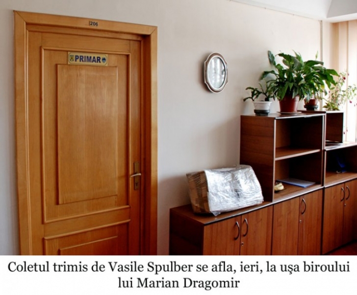 Cadoul de învestire trimis de brăileanul Vasile Spulber către primarul Marian Dragomir a ajuns la destinaţie. Firma de curierat angajată de expeditor şi-a făcut treaba, iar ieri coletul era depozitat pe un raft, chiar lângă uşa noului edil-şef. Reamintim că în cutia de carton se aflau bucşe, amortizoare, caseta de direcţie şi alte piese despre care Vasile Spulber spune că a trebuit să le înlocuiască la maşina personală, din cauza gropilor existente pe strada Mircea Vodă din cartierul Radu Negru. Pe strada respectivă îşi au sediul firma lui Spulber, "Breda Com" SRL, dar şi alte societăţi comerciale ale căror patroni se plâng de starea deplorabilă a carosabilului. Reamintim că inclusiv un mare distribuitor de butelii de aragaz are un depozit acolo şi susţine că şi-a distrus mai multe autospeciale de transport din cauza gropilor din carosabil.