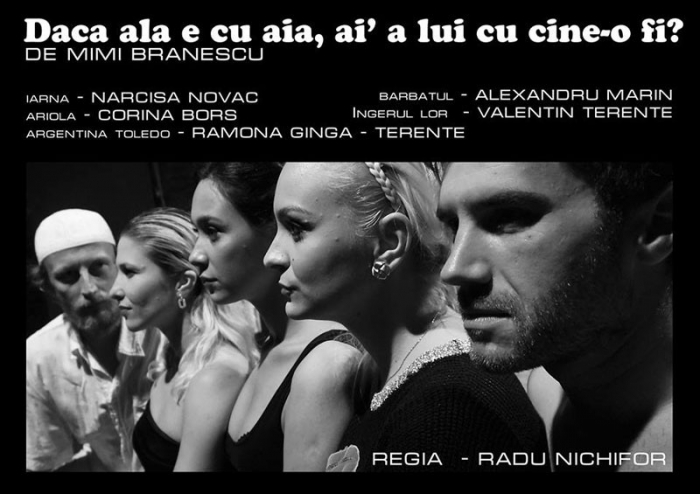 În acest weekend, la Grădina "Boema" poate fi văzută o altă producţie brăileană din categoria teatrului independent. Tinerii actori Narcisa Novac, Corina Borş şi Alexandru Marin, împreună cu mai experimentaţii lor colegi Ramona Gîngă şi Valentin Terente, vor prezenta la Grădina "Boema", în premieră, spectacolul "Dacă ăla e cu aia, aia lui cu cine-o fi?", o comedie despre dragoste, foarte actuală, cu un text incitant, aşa cum obişnuieşte Mimi Brănescu să scrie. "Titlurile lui Brănescu sunt mereu provocatoare, iar textul este interesant. Pe Brănescu nu prea ştii în ce categorie să-l încadrezi. Are nişte jucării care te fac să plângi, în piesele lui strecoară aşa, printre hohote de râs, nişte lucruri profunde. Are roluri feminine impecabile. Acest text este tot o poveste de dragoste, extrem de actuală, iar pentru mine a fost extraordinar să mă bucur de entuziasmul tinerilor actori. Narcisa Novac, o actriţă care cred că va face un salt foarte mare, este o actriţă foarte specială, Corina Borş, care a reuşit un rol diferit faţă de ceea ce a realizat ea până acum, iar Alex Marin este un actor cu totul special. Mi-a făcut mare plăcere să mă reîntâlnesc la lucru cu Ramona Gîngă pentru că nu am mai lucrat de mult cu ea, o actriţă cu mare generozitate, şi Valentin Terente, un personaj care e un înger ce explică la final tot ce se întâmplă", a precizat regizorul Radu Nichifor. Implicarea sa în acest proiect de teatru independent a venit ca urmare a faptului că a văzut o altă producţie a oamenilor tineri din teatru, "Destinaţii", şi a fost emoţionat. "Acum o lună am văzut un spectacol tot la Boema, «Destinaţii» şi m-a emoţionat foarte tare pentru că este primul în care toţi cei care l-au făcut sunt tineri: regie Septimiu Stoica, Alex Petcu, absolvent al Liceului de Artă, trei actori, Narcisa Novac, Corina Borş, Alex Marin. Ei au făcut un spectacolaş, prima jucărie pe care noua generaţie a dus-o la capăt, pe acolo nu a călcat niciun veteran... Şi m-au provocat. Eu sunt de părere că dacă îi zici unui actor că-ţi place de el trebuie să-l iei să-l joci, când îţi place un dramaturg trebuie să-l montezi, dacă îţi place un regizor, ajută-l să monteze. Entuziasmul lor a fost incredibil. L-am sunat pe Mimi să-i spun că facem spectacolul şi nu i-a venit să creadă, mi-a spus că nu aveam cum să-l facem pentru că acum trei săptămâni eram în vacanţă. Şi când a aflat că au în jur de 25 de ani a spus şi el că este posibil pentru că sunt tineri şi entuziaşti", a povestit Radu Nichifor.