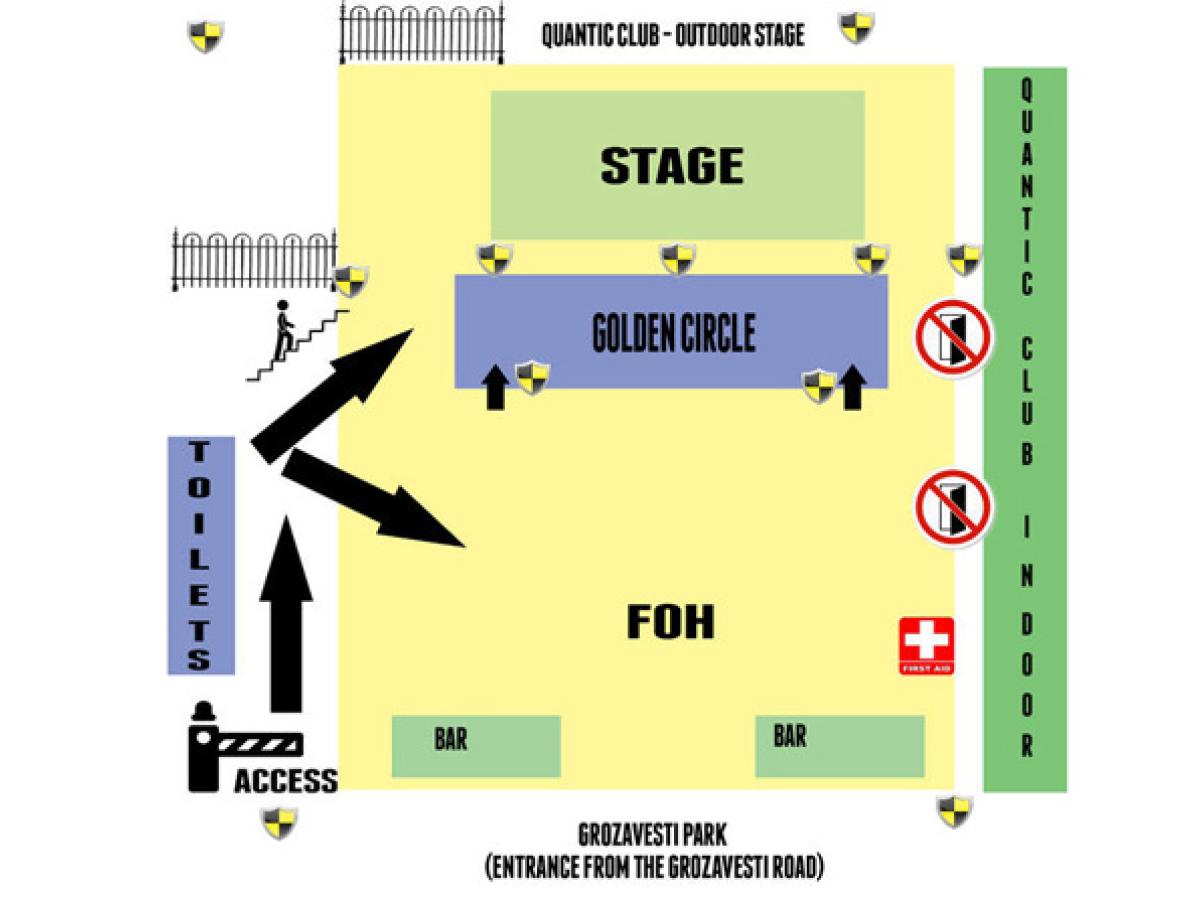 Potrivit comunicatului emis de organizatori, accesul în zona de concert Open Air Quantic va fi permis pe întreaga durată a evenimentului, astfel că publicul poate intra, indiferent de oră, pentru a vedea trupele preferate. Intrarea în club se face dinspre Şoseaua Grozăveşti, iar accesul în perimetrul evenimentului se face prin interiorul clubului şi este permis doar în baza unui bilet valid. Posesorii de bilete Golden Circle vor primi câte o brăţară specială cu care vor intra în zona dedicată. Posesorii de bilete Acces General nu vor primi braţară. Având în vedere ca show-ul va fi în spaţiu Open Air, fumatul va fi permis în zona de concert. Accesul minorilor, inclusiv celor sub 14 ani, este permis pe bază de bilet şi doar dacă aceştia sunt însoţiţi de unul dintre părinţi, de asemenea posesor al unui bilet valid. Oganizatorii recomandă, pentru a înlătura orice dubii, prezentarea la intrare a unui act doveditor al vârstei copilului (copie). Totodată aceştia sfătuiesc participanţii la concert să aibă căşti speciale pentru protecţia auzului copiilor. De reţinut că accesul în zona Golden Circle din faţa scenei se va face pe bază de braţară, care va fi primită la intrare.