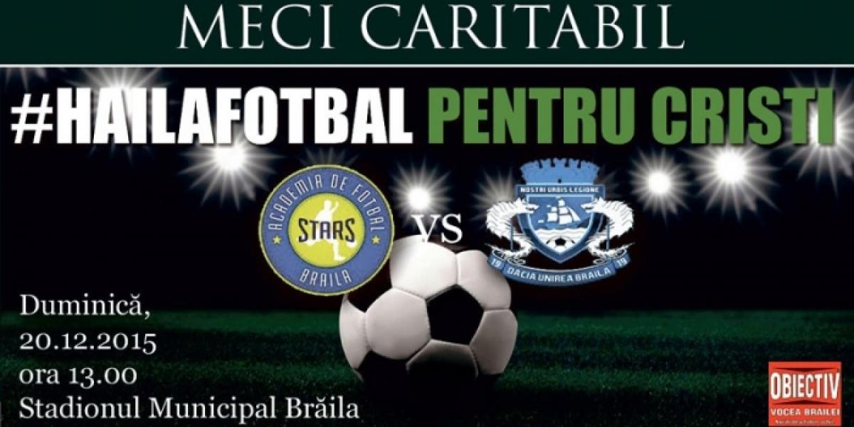 Duminică, 20 decembrie 2015, la ora 13.00, pe Stadionul Municipal se va desfăşura un meci caritabil, "#hailafotbal" pentru Cristi. Cluburile sportive ce au ales să se implice în această acţiune umanitară sunt Academia de Fotbal "Stars" Brăila şi Dacia Unirea Brăila.