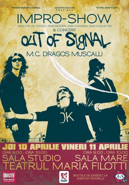Spectacolul se va încheia cu recitalul trupei "Out Of Signal", trupă de cover-uri formată din Silviu Paraschiv, Alexandru Muşat şi Ionuţ Drăghici, toţi trei membri ai celei mai cunoscute trupe rock din Brăila, "Addiction", şi elevi la Liceul de Arte "H. Darclee". Acest spin-off este un proiect de sine stătător, în playlist-ul tinerilor regăsindu-se hit-uri din anii 80 şi până în prezent. "Primăria Brăila are un partener constant şi dedicat segmentului de tineri începând cu 16 ani, Asociaţia Cooltura, care, nonformal, şi-a propus prin proiecte performante să se adreseze de această dată nu numai tinerilor, dar şi tuturor celor implicaţi în actul educativ: profesori, psihologi, autorităţi. Cu siguranţă, cei cinci plus trei tineri vor crea un spectacol de teatru interactiv şi muzică etalându-şi astfel talentul şi poate comunicând astfel calea pe care o vor urma, teatrul sau muzica. E o bucurie şi o plăcere să-i vezi jucând, să-i auzi cântând, debordând de talent şi tinereţe", a declarat viceprimarul Doiniţa Ciocan.