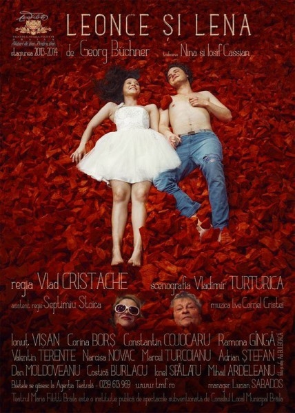 Pe scena Teatrului "Maria Filotti", în sala Mare, se va juca premiera "Leonce şi Lena" de Georg Buchner, traducerea Nina şi Iosif Casian, regizat de Vlad Cristache. Asistent de regie este Septimiu Stoica, scenografia a fost concepută de Vladimir Turturică, iar muzica va fi interpretată live de Cornel Cristei.