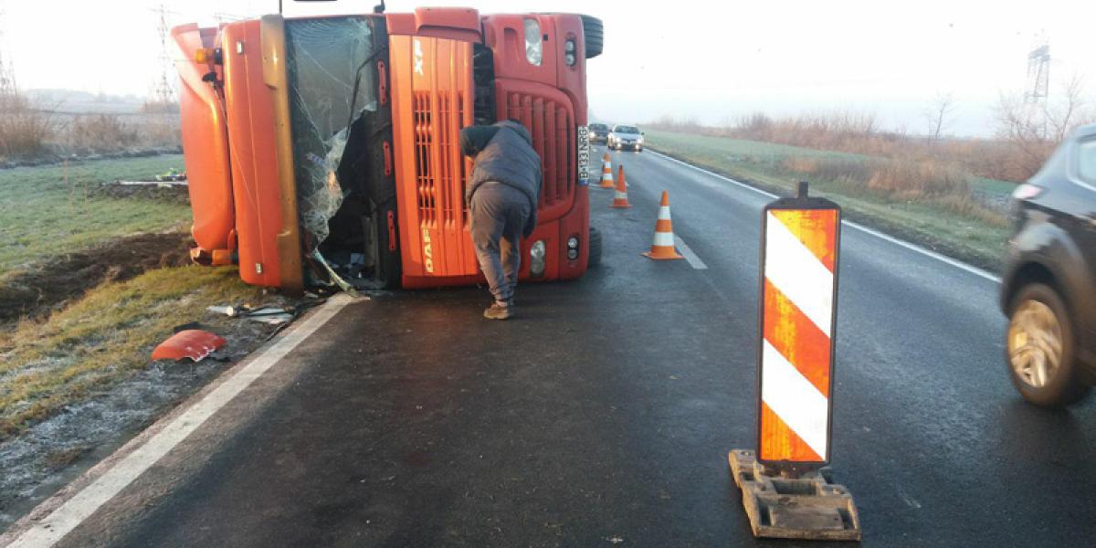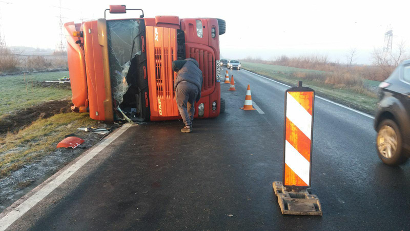 Miercuri, la ora 4 dimineaţa, poliţiştii au fost anunţaţi că un tir s-a răsturnat pe DN 2B, în afara localităţii Lacu Sărat. Este vorba despre un autotren ce transporta marfă la un hipermarket din municipiul Brăila. Din primele cercetări, se pare că şoferul nu a adaptat viteza la condiţiile de mers şi s-a răsturnat, blocând sensul de circulaţie Buzău - Brăila, în porţiunea respectivă.
