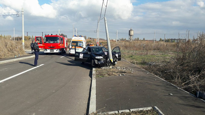 • un şofer brăilean de 58 ani şi soţia acestuia, pasager în dreapta, au ajuns la spital, după ce maşina în care se aflau a ieşit de pe şosea şi s-a lovit de un stâlp de electricitate • conducătorul auto era concurent la “Raliul Prieteniei” Brăila - Dobrich