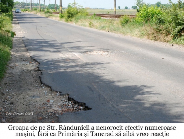 Mai sunt, aşadar, destul de multe străzi de reparat. Pe multe dintre acestea există gropi foarte mari şi periculoase, care le-au provocat pagube şoferilor. Pe Str. Rândunicii, de exemplu, care trece prin spatele Stadionului Municipal, există de câteva săptămâni o groapă atât de adâncă, încât maşinile ce nu reuşesc să o ocolească la timp sunt victime sigure. "Eu trec zilnic prin această zonă şi cunosc foarte bine această groapă. Când mă apropii de ea încetinesc, ca să o pot ocoli chiar dacă îmi vine maşină pe contrasens. Cei care nu ştiu de locaţia ei, au toate şansele să o ia în plin. Într-o zi, vreo trei maşini erau oprite, una după alta, după ce nu reuşiseră să evite groapa asta şi s-au ales cu roţile îndoite", ne-a povestit şoferul brăilean Mircea T.