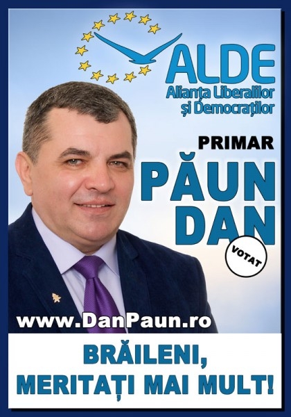 Dan Păun este consilier municipal ALDE şi candidează la alegerile locale din 5 iunie atât pentru funcţia de primar al Brăilei, cât şi pentru un nou mandat de consilier municipal. Are 52 de ani, este inginer şi lucrează de peste 20 de ani în mediul privat, ca administrator sau manager al unor firme. De asemenea, este consilier municipal din anul 2012 şi a absolvit un curs postuniversitar de Management politic. Este fondator şi preşedinte al Asociaţiei neguvernamentale "Green" - ONG de mediu şi activează de aproape 20 de ani în domeniul protecţiei mediului.