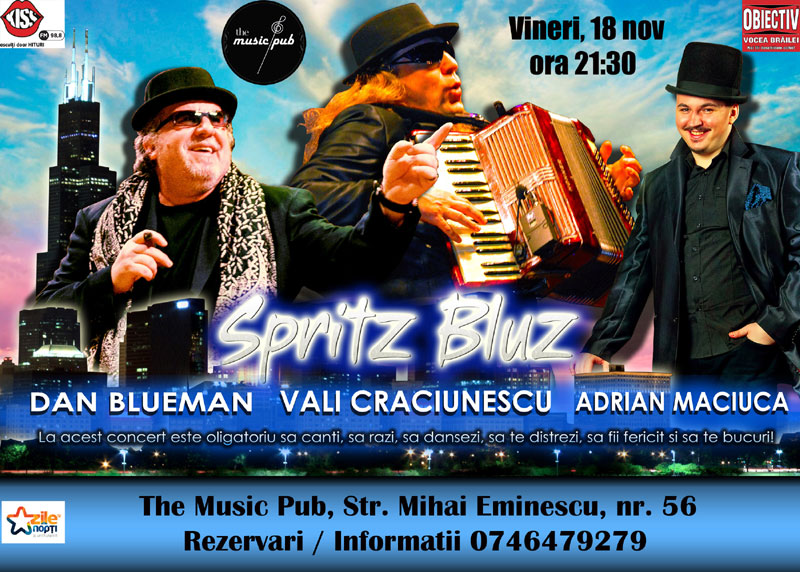 Cei interesaţi de concertul „Spritz Bluz” ce va avea loc, vineri, la The Music Pub, pot cere mai multe informaţii sau face rezervări la numărul de telefon 0746.479.279.
