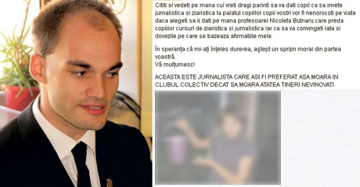 Mesajul însoţit de fotografia mea: "Aceasta este jurnalista care aş fi preferat să moară în Colectiv"