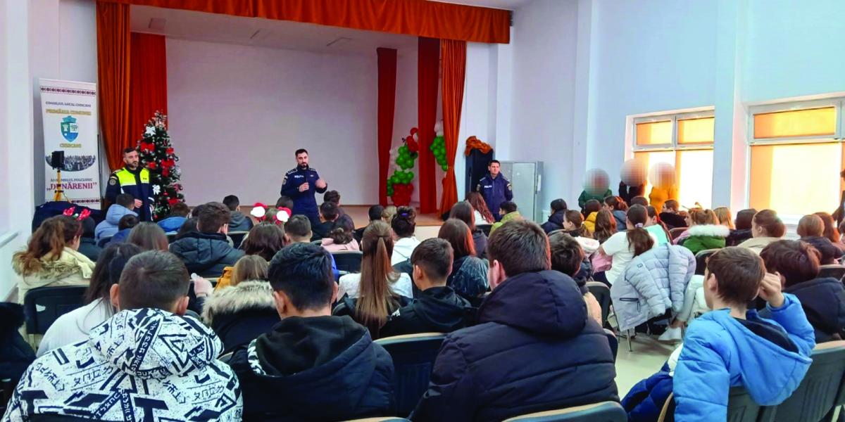 Oamenii legii au transmis copiilor principalele reguli pe care trebuie să le respecte atunci când se află în unitatea de învățământ, care dintre fapte săvârșite pot fi contravenții - limbajul vulgar, consumul de tutun în incinta curții și a școlii și care infracțiuni - lovirea sau alte violențe, furtul, distrugerea, infracțiunile la viața sexuală, portul sau folosirea fără drept de obiecte periculoase, deținerea de substanțe interzise în vederea consumului, precum și care sunt infracțiunile la care pot deveni victime în afara mediului școlar, accentuând pe infracțiunile care decurg din folosirea excesivă a mediilor de socializare și a tehnologiei. Totodată elevilor le-au fost prezentate interdicțiile de a veni la școală cu materiale pirotehnice, artificii sau pocnitori, care sunt interzise în spații închise și sub vârsta de 16 ani.
