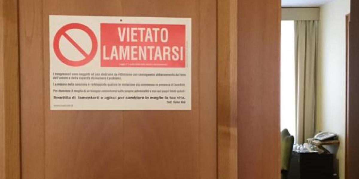 O pancartă pe care stă scris „Interzisă lamentarea” a fost montată pe uşa camerei Papei Francisc, potrivit unei imagini publicate pe site-ul Vatican Insider.