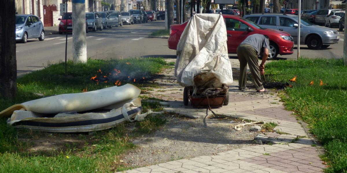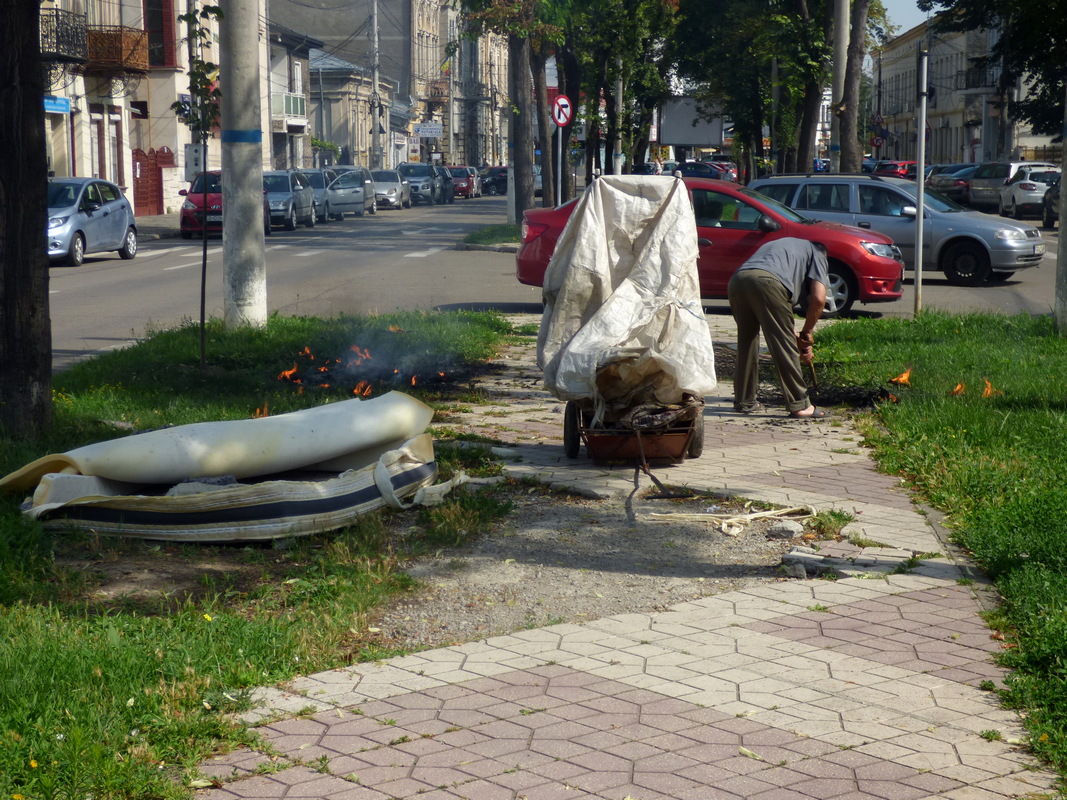 * în plină zi, un om al străzii a dat foc la o saltea pentru a putea recupera și vinde arcurile de oțel la fier vechi * s-a întâmplat pe bulevardul Cuza, în apropierea Bisericii Bulgărești...