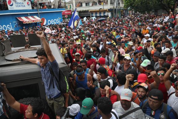 Mii de bărbaţi, femei şi copii au avansat 40 de kilometri pe teritoriul Mexicului pornind de la Ciudad Hidalgo, la graniţa cu Guatemala, şi ajungând în oraşul Tapachula, ambele în statul Chiapas.