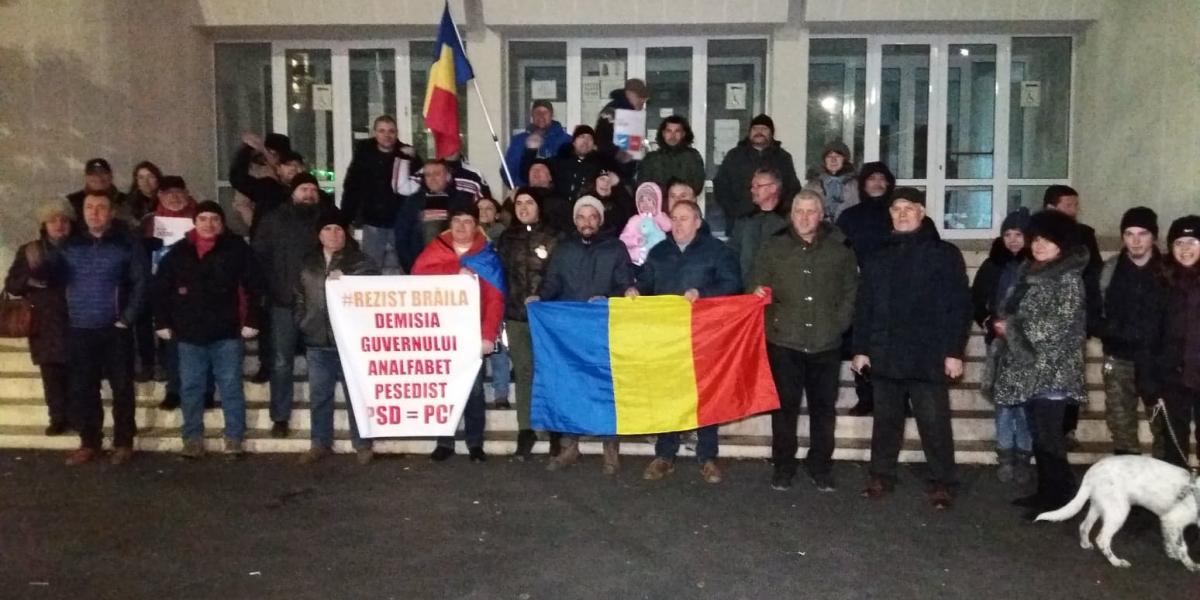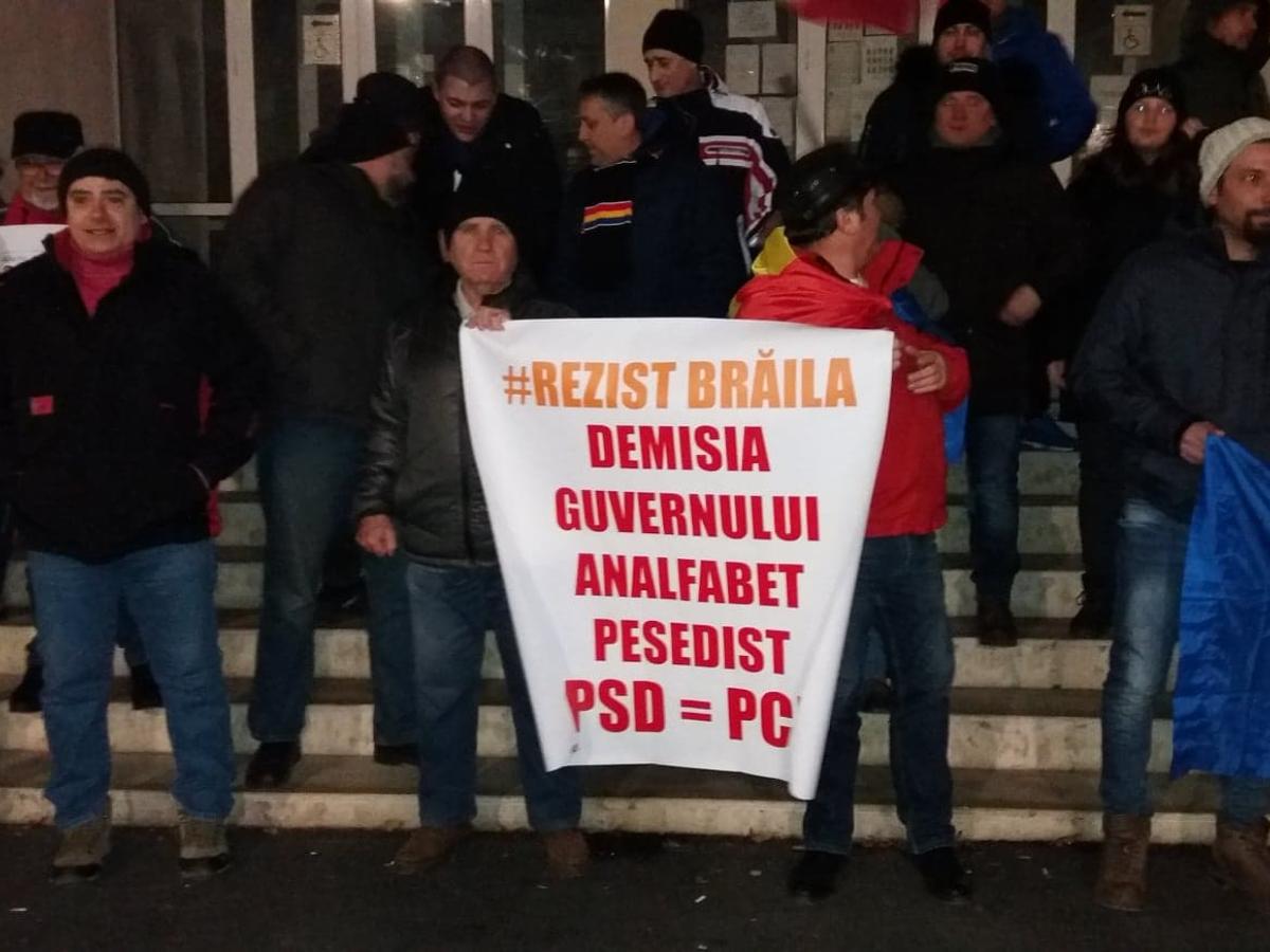 Modificările recente aduse Legilor Justiției prin Ordonanța de urgență a Guvernului Dăncilă au revoltat o țară întreagă. Inclusiv 40 de brăileni au renunțat la căldura din case și au ieșit în stradă, la protest, duminică seară. Mobilizarea s-a făcut pe Facebook, iar pe la 18.00, oamenii au început să se strângă pe platoul din fața Prefecturii. Ulterior, au pornit în marș până la Palatul Justiției, acolo unde au și rămas pentru a-și manifesta nemulțumirea față de actuala conducere social-democrată a țării.