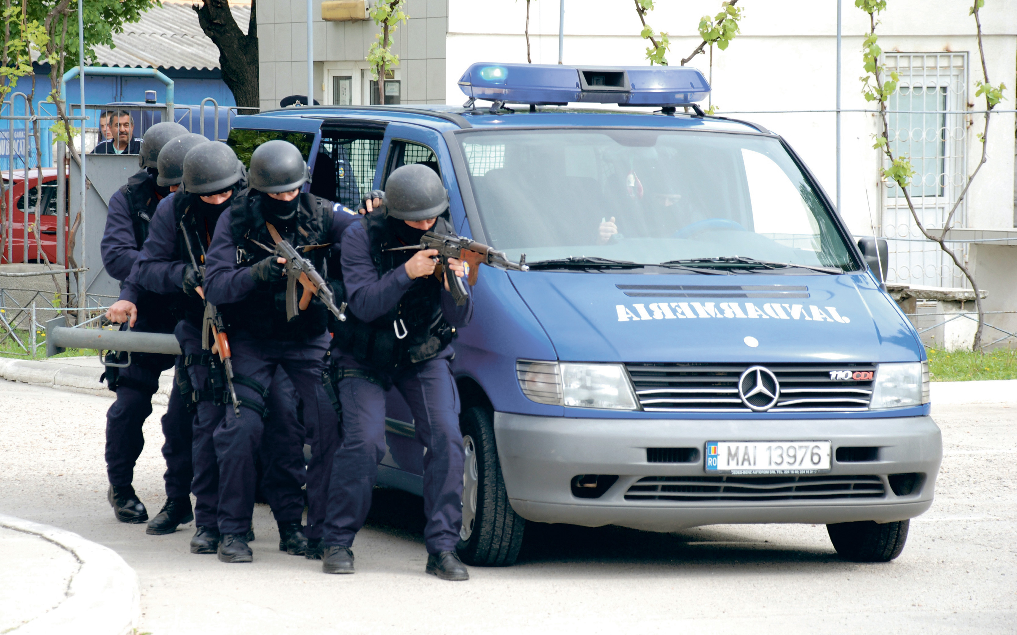 Între contrastul dintre misiunile de zi şi cele de noapte, se află grupa specială a inspectoratului, grupa antitero. Este formată din jandarmi foarte bine pregătiţi şi intervine doar în cazuri deosebite. Le vom proteja identităţile lucrătorilor care au acceptat să stea de vorbă cu noi, din motive lesne de înţeles. Aceştia ne-au povestit, atât cât au putut, cum se desfăşoară activitatea lor: fac pregătire fizică şi tactică frecvent, merg periodic la cursuri de perfecţionare şi sunt tot timpul cu ochii pe telefon, pentru că oricând, la orice oră, pot fi chemaţi la serviciu. Oamenii simpli îi cunosc drept “mascaţi”, denumire populară născută din faptul că lucrătorii îşi ascund chipurile în spatele cagulelor. “Nu prea avem timp liber, pentru că ne pregătim mult. Nu mă deranjează că trebuie să stau tot timpul atent la telefon, mi-am asumat acest lucru din momentul în care mi-am ales meseria”, ne-a declarat unul dintre “mascaţi”. Întrebaţi care misiuni sunt cele mai periculoase, din punctul lor de vedere, aceştia ne-au răspuns: percheziţiile. “Deşi noi ne pregătim şi gândim scenarii şi situaţii extrem de grele pentru a ne fi uşor în misiunile reale, niciodată nu poţi şti ce e dincolo de uşă, în cazul percheziţiilor. Trebuie să fim atenţi, să luăm decizii rapid şi să fim o echipă. Comunicăm prin semne şi ne bazăm unul pe celălalt”, ne-a spus alt jandarm de la Antitero. O altă întâmplare, amuzantă am putea spune, dar care demonstrează cât de bine pregătiţi sunt aceşti lucrători, ne-a fost povestită de un al treilea: “La o descindere, s-a întâmplat să nu fim informaţi că proprietarul are un câine în locuinţă. Am intrat repede în cameră, l-am încătuşat pe om şi am plecat cu el. Când următorii colegi au venit să asigure camera, au dat nas în nas cu un pitbul. Totul s-a desfăşurat rapid, intervenţia a fost rapidă, animalul nici nu a avut timp să se dezmeticească şi să reacţioneze. Oricum, s-a dovedit a fi un câine blând, începuse să se joace”.