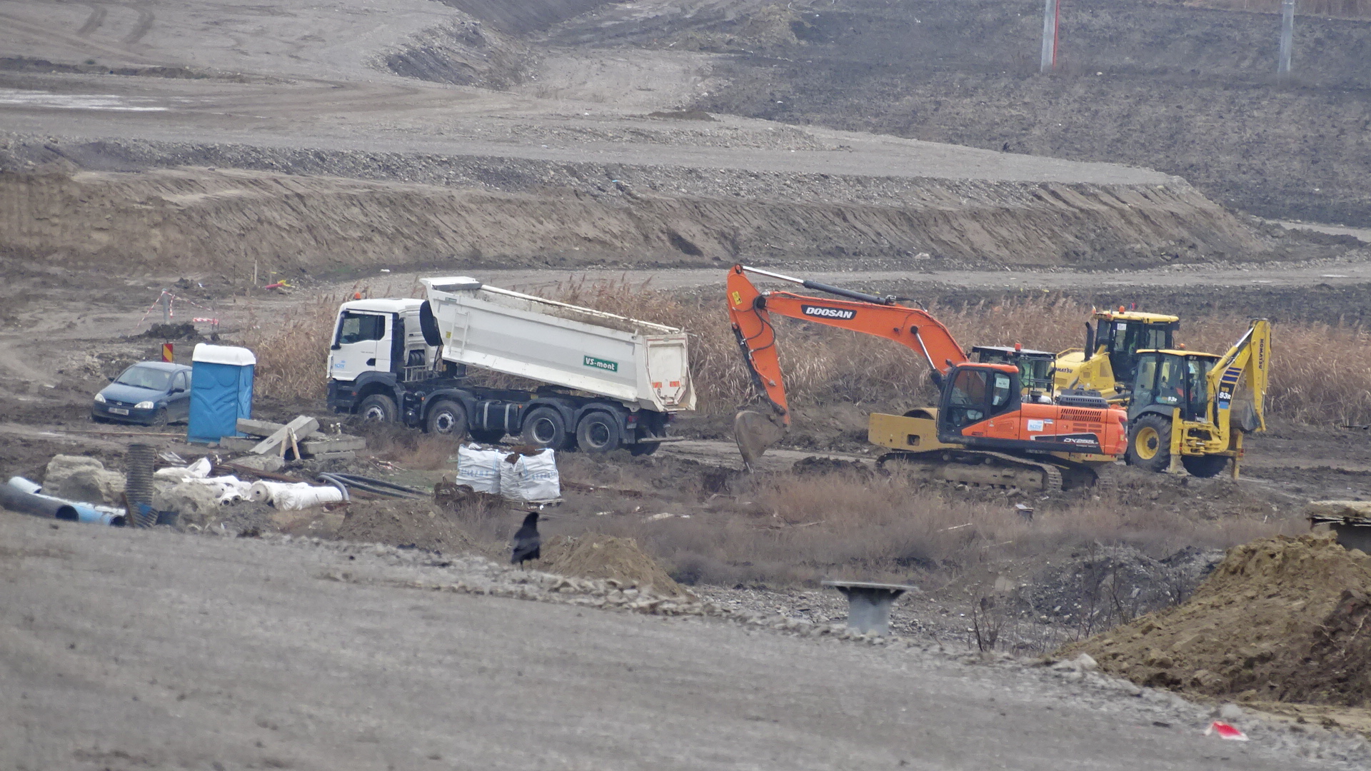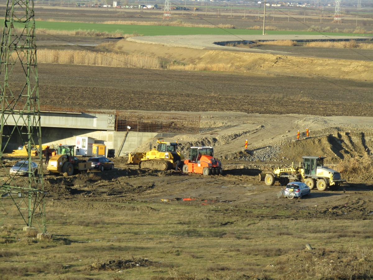 În ciuda vremii capricioase și a terenului deja afectat de ultimele ploi, pe șantierul drumului de legătură pentru noul pod peste Dunăre, mai exact între pod și Șoseaua Baldovinești, forfota de mașini și utilaje grele denotă că onor constructorii - italienii de la WeBuild (ex-Astaldi) - sunt hotărâți să recupereze cât mai mult din timpul pierdut în sezonul cald. Asta în contextul în care, astă vară, lucrările din apropierea fostului FNC s-au desfășurat după un program lejer, unele echipe fiind transferate pe șantiere din alte județe. Lucrările reluate în toamnă au coincis cu mutarea câtorva stâlpi de înaltă tensiune dar și cu montarea altora noi, din metal și cu o înălțime care să permită continuarea /extinderea organizării de șantier. Bine, totuși, că situația a intrat în normalitate. Inclusiv cu prezența Poliției Locale Brăila, aceasta asigurând evitarea oricărui eveniment rutier, dat fiind traficul foarte intens pe un carosabil îngust, cu zeci de autovehicule grele și autoturisme, dar și a vitezomanilor. Pentru cei familiarizați cu zona este de notorietate faptul că, de la ieșirea din Brăila și până la Șoseaua Baldovinești, se ajunge la viteze de peste 100 km/oră și este un gest sinucigaș să fii pieton, de-a lungul drumului care are de multă vreme acostamentul distrus de TIR-uri și autobasculantele de mare tonaj.