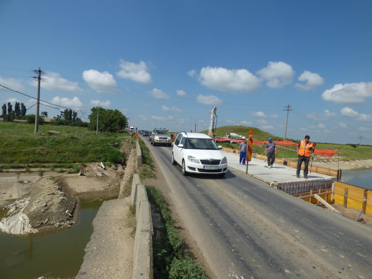 Deși, ca de fiecare dată, de la Secția Brăilanu nu se dă nici o relație (fiind trimiși să ne adresăm, cu toată birocrația de rigoare la regionala din Constanța) am reușit să aflăm totuși că “din luna mai s-au atacat lucrările la fundație, culee și pile, acum placa de rezistență de la suprafață este în lucru și se depun toate eforturile pentru încadrarea în termenul de 12 luni”. Termenul respectiv ar putea fi respectat dacă la toamnă se va profita din plin de golirea canalului de irigații. Să vedem…