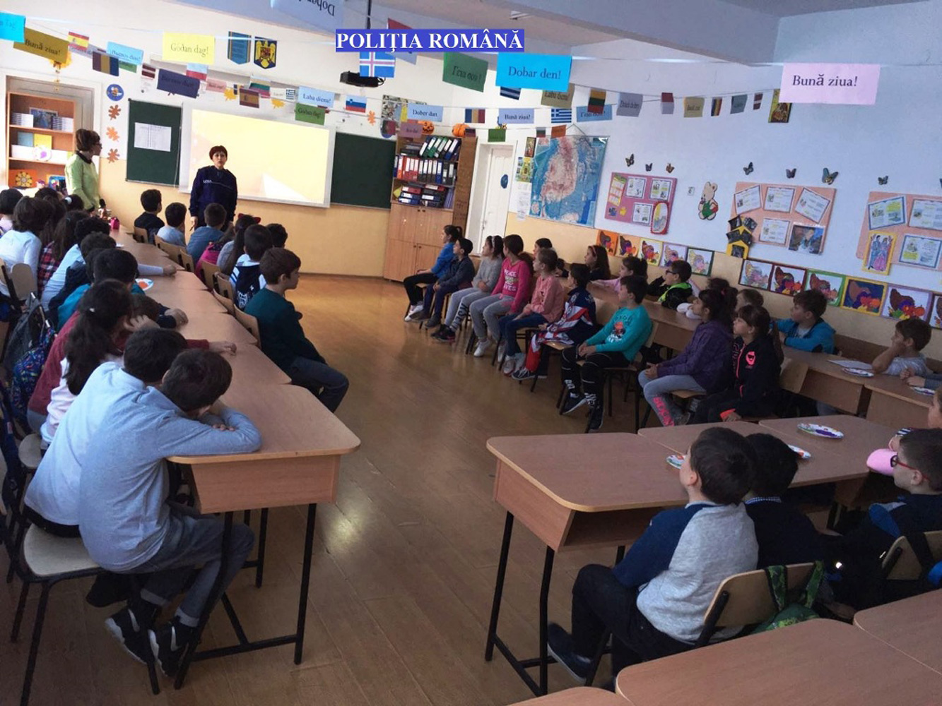 • vineri, elevii claselor a III-a de la Şcoala Gimnazială “Mihu Dragomir” Brăila i-au avut în vizită pe oamenii în uniformă care le-au vorbit despre siguranţa pe internet