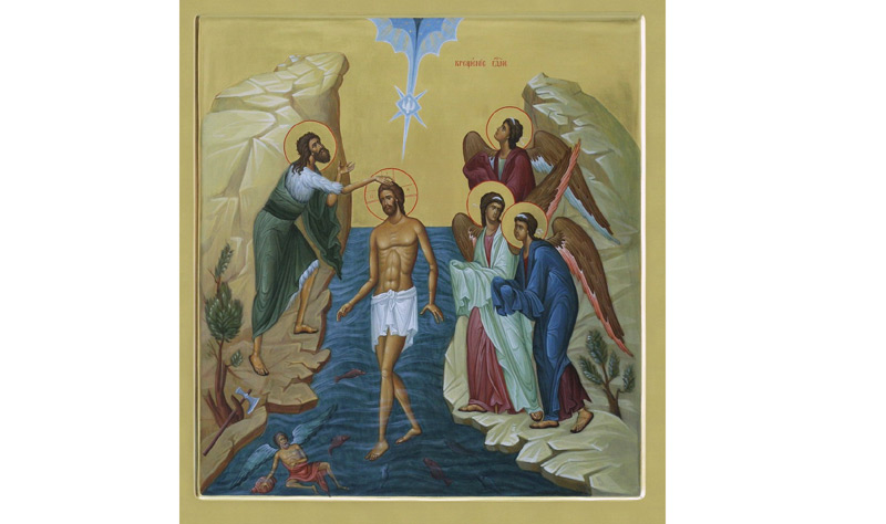 Mântuitorul nostru Iisus Hristos a fost botezat în râul Iordan de către Sfântul Ioan Botezătorul, numit şi Înaintemergătorul Domnului. Sfântul Prooroc Ioan L-a oprit pe Iisus, zicând: “Eu am trebuinţă să fiu botezat de Tine şi Tu vii la mine?”. Dar Domnul Iisus i-a răspuns că Botezul Lui este plinirea a toată dreptatea. Prin Botezul Domnului Hristos, toată firea apelor s-a sfinţit.