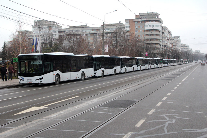 • discutăm despre 10 autobuze de mare capacitate (94 locuri pe scaun şi în picioare) marca ISUZU CITIPORT şi încă 5 de capacitate medie - cunoscutul model KARSAN ATAK, 60 de locuri - care au venit să completeze flota “Braicar” • acestea costă, în total, 2.255.000 euro plus TVA şi se vor plăti în mai multe rate egale, în 3, respectiv 4 ani • potrivit primarului Marian Dragomir, flota “Braicar” a ajuns în prezent la 52 de autobuze noi, astfel că nu ar mai trebui să existe episoade neplăcute cu mijloace de transport în comun foarte aglomerate