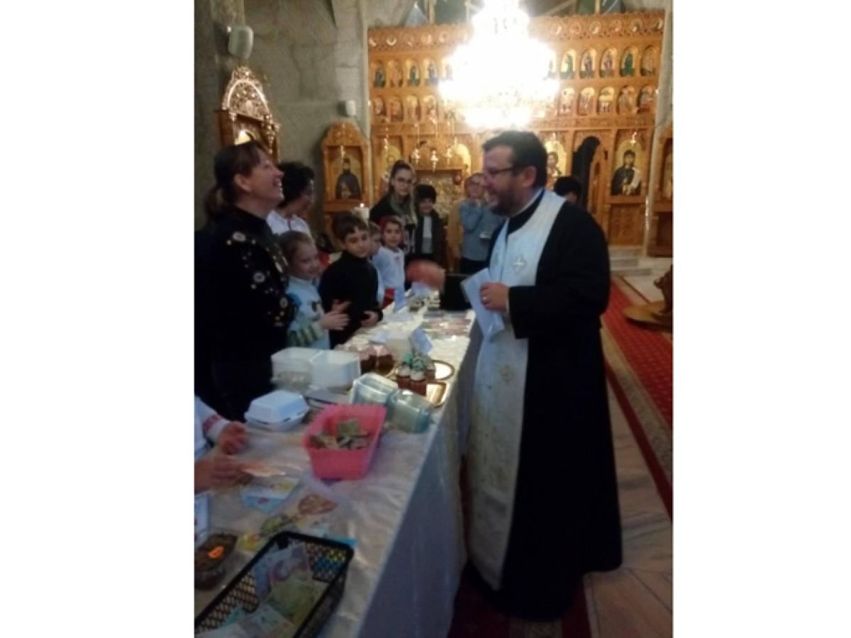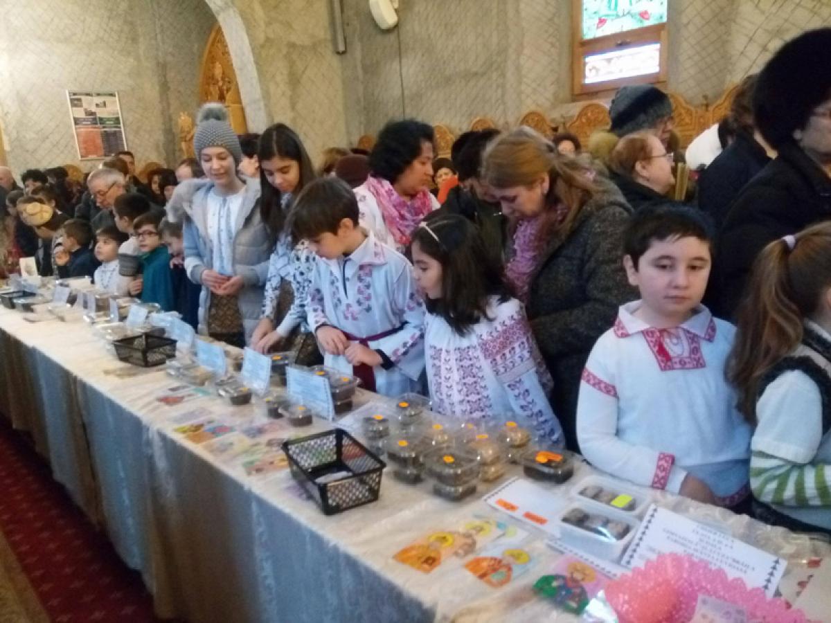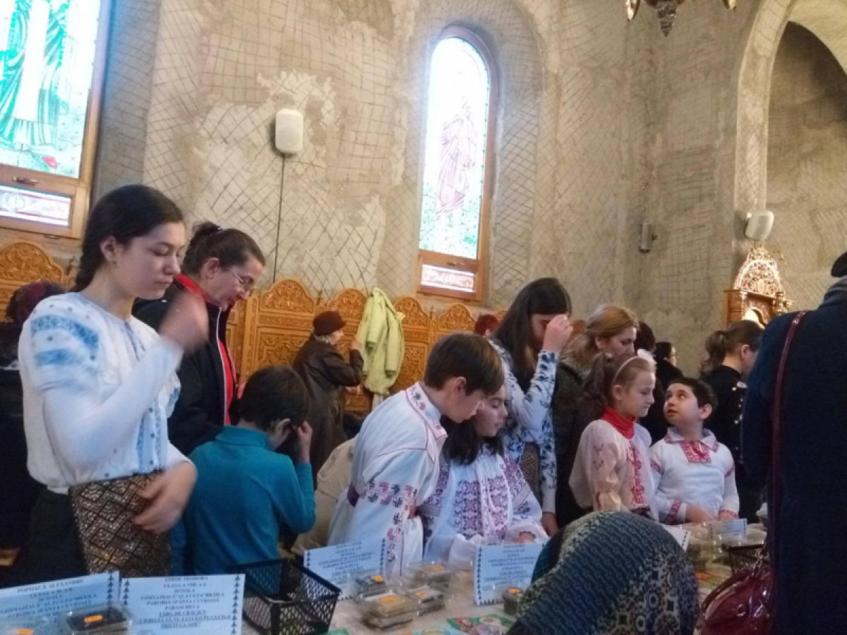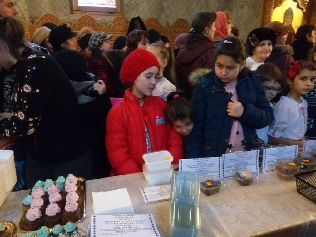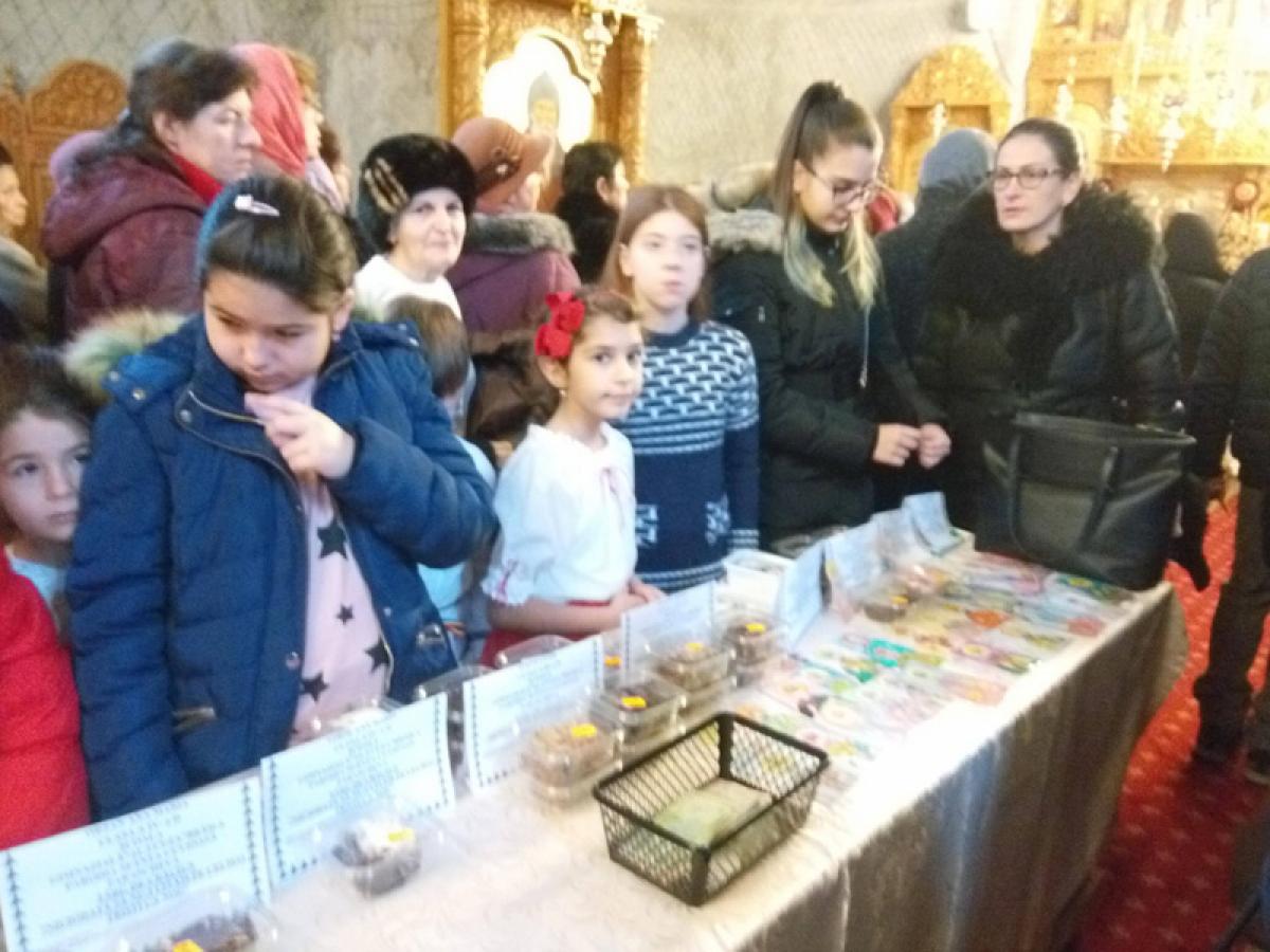 Copiii au realizat 400 de iconiţe şi cruciuliţe, iar cu ajutorul părinţilor au pregătit peste 200 de prăjituri de post: salam de biscuiţi, plăcintă de dovleac, plăcintă de mere, cozonac, biscuiţi şi alte bunătăţi. La biserica “Sf. Parascheva”, au participat 30 de elevi de la clasele IA (prof. Carmen Toader), a II-a A (prof. Chirpac Marioara), a II-a B (prof. Florinela Neagu), a II-a C (prof. Eugenia Stoichiţoiu), a III-a A (prof. Mihaela Bănică), a III-a D (prof. Carmen Ostache), a IV-a A (prof. Mirela Cireaşă), a IV-a D (prof. Liliana Ionaşcu) şi a VIII-a A (prof. Roxana Jipa), alături de părinţii lor. Îmbrăcaţi în costum popular, cu inimile pline de iubire şi dăruire, elevii au reuşit să vândă produsele şi au strâns pentru Cristi 2.054 lei, bănuţi care vor ajunge la adolescent, pentru a-i salva viaţa. “Mulţumim părintelui paroh Stan Ştefan pentru găzduire, implicare şi încrederea acordată. La această acţiune, preotul Stan Ştefan ne-a susţinut în activitate şi prin achiziţionarea de caserole de unică folosinţă necesare ambalării individuale ale prăjiturilor, precum şi plastifierii iconiţelor puse la vânzare”, a precizat directorul Şcolii Gimnaziale “Alexandru Ioan Cuza”, Magdalena Cotlerenco.