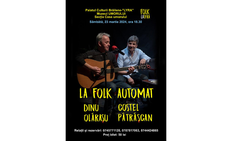 Spectacolul se numeşte „La folk automat” şi îl puteţi vedea sâmbătă, 23 martie, de la ora 18.30, la Palatul Culturii Brăilene - LYRA.