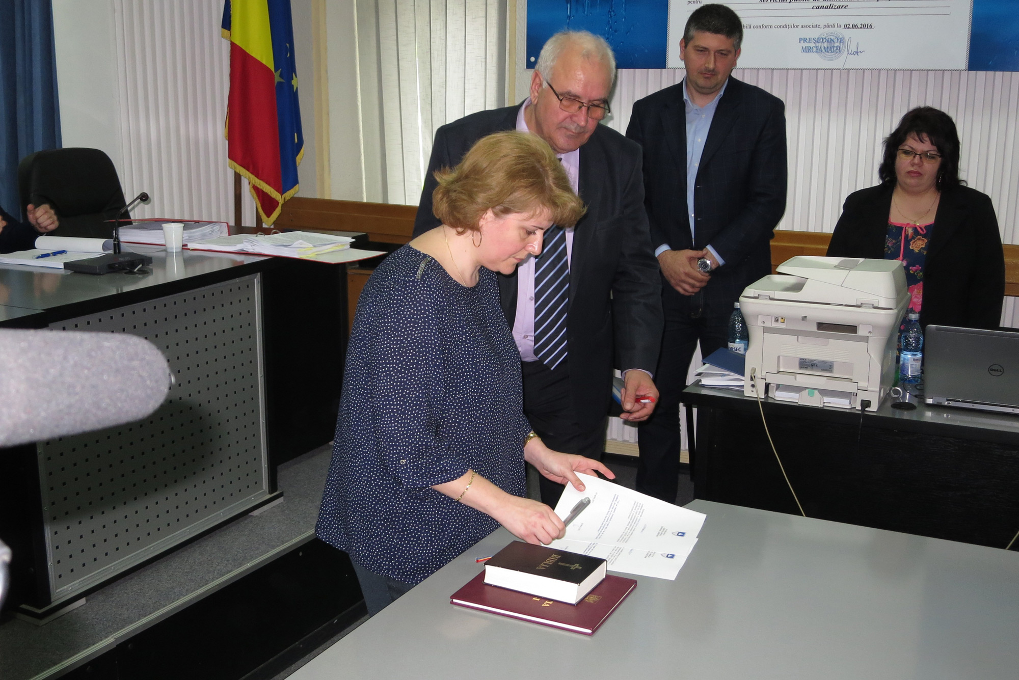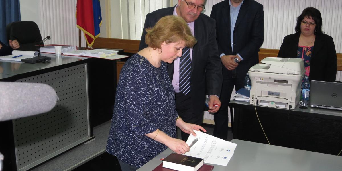 Aceasta şi-a depus, ieri, jurământul de credinţă în faţa plenului şi şi-a ocupat locul în rândul celorlalţi 33 de consilieri judeţeni. Ca o noutate, depunerea jurământului a fost lăsată la finalul şedinţei ordinare, astfel că noul consilier nu a participat efectiv la vot, ci doar a asistat.
