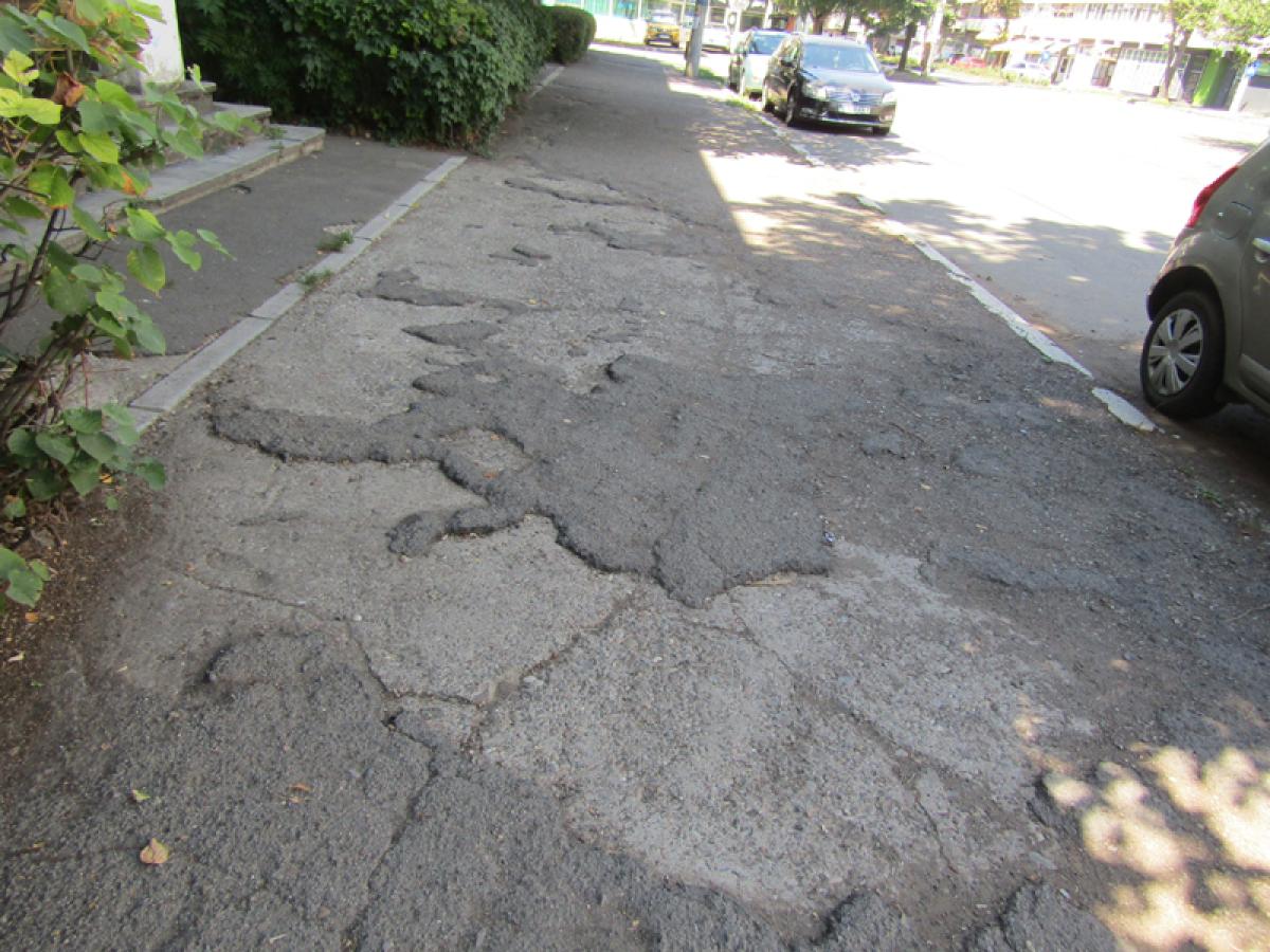 Un trotuar foarte larg, dar în suferinţă este și pe strada Eremia Grigorescu, lângă biserica Sf. Gheorghe, la blocul 10. Și multe altele, în tot municipiul…