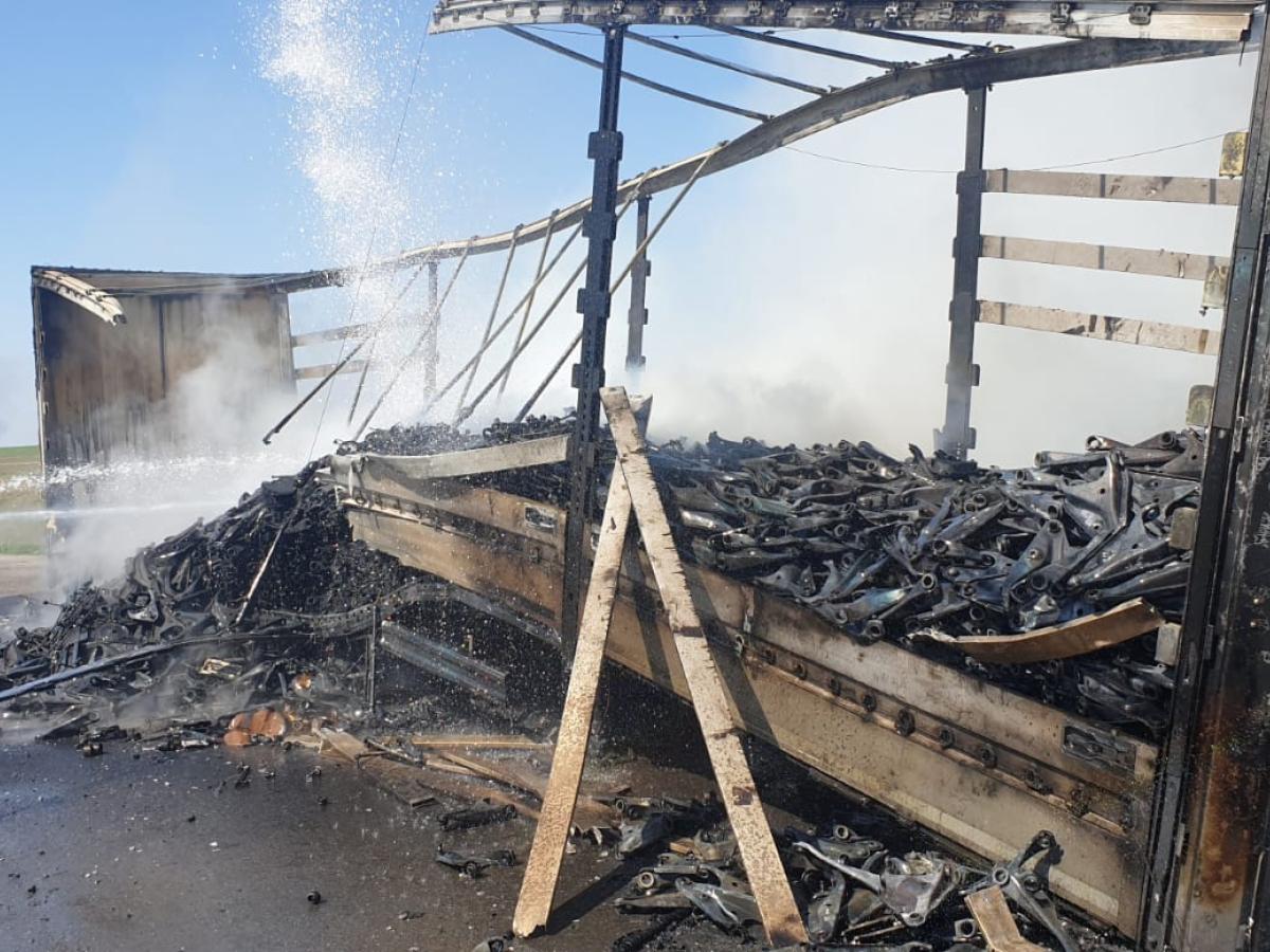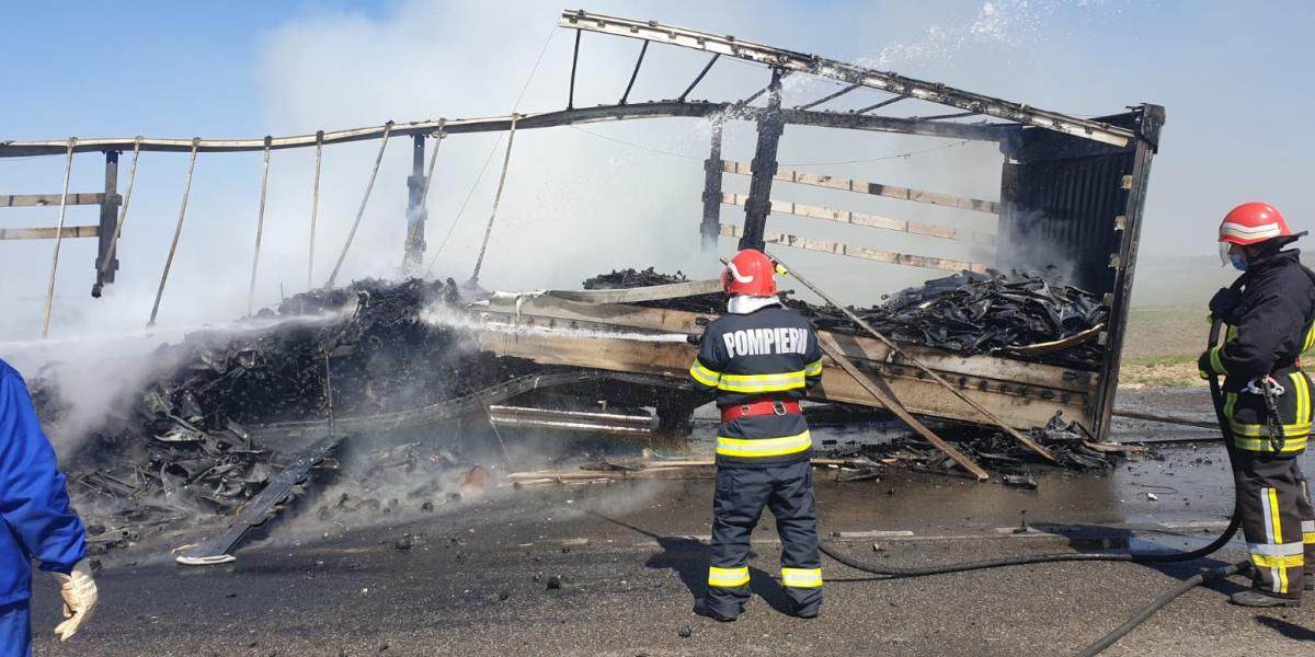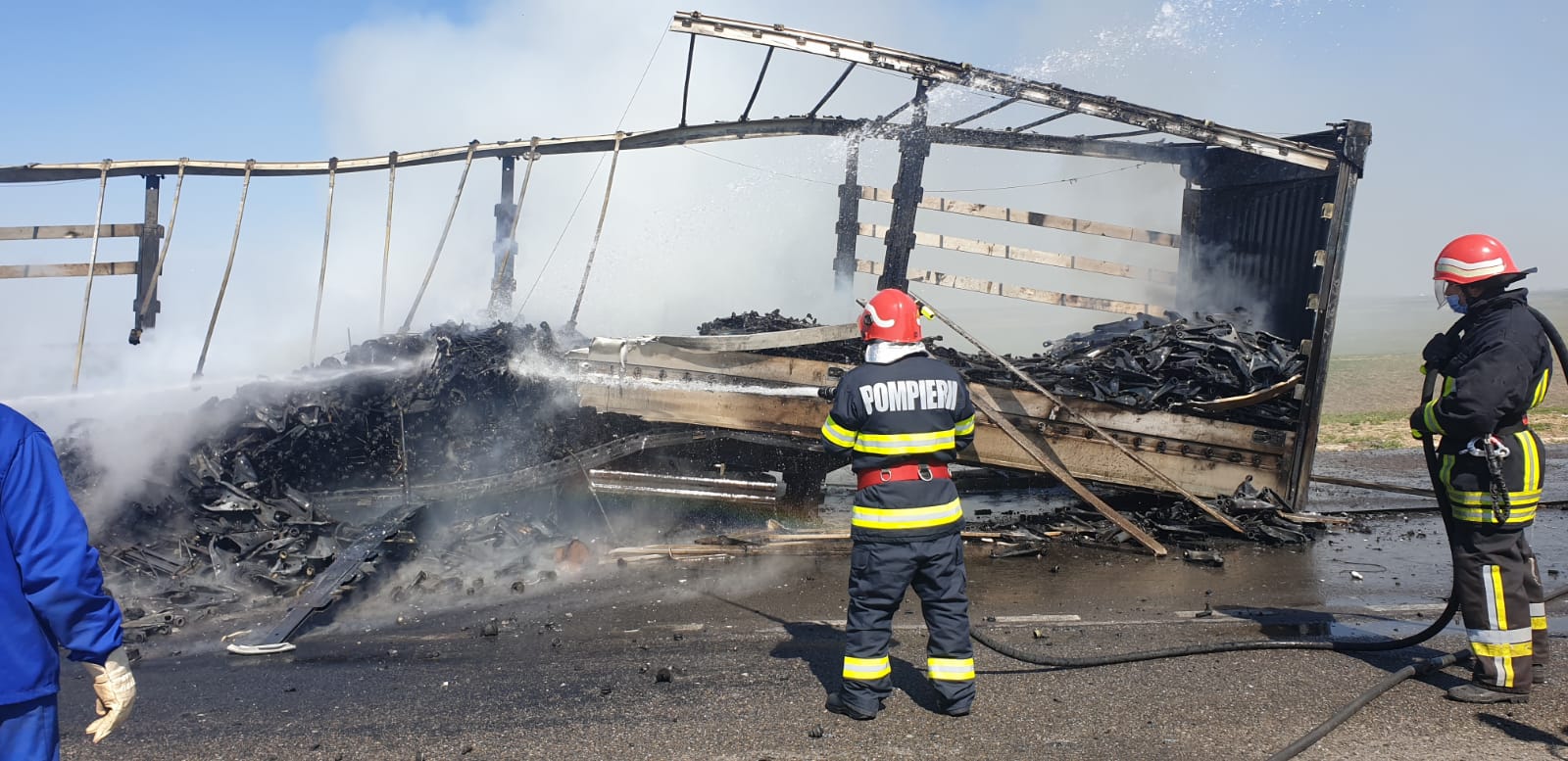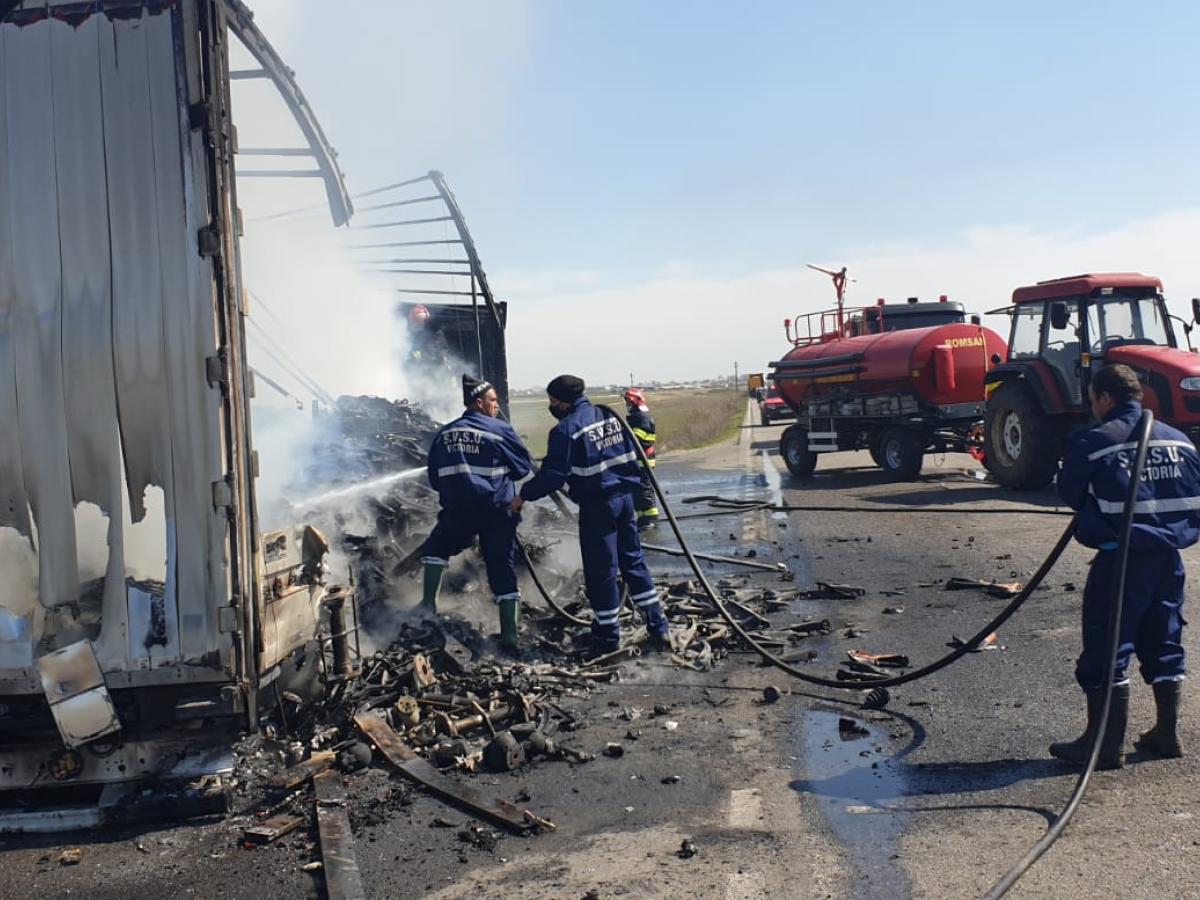 Un camion încărcat cu piese auto a luat foc, în această dimineață, pe drumul dintre localitățile Victoria și Berteștii de Sus. Șoferul de naționalitate turcă a reușit să desprindă capul tractor, însă restul vehiculului a fost distrus de flăcări, cu toată marfa dinăuntru. Încă nu s-a stabilit cauza incendiului. Au intervenit pentru stingere pompierii de la Detașamentul 2 și de la Garda Însurăței, cu câte o autospecială, în ajutorul acestora venind și Serviciul Voluntar pentru Situații de Urgență Victoria, cu încă o autospecială de stingere.