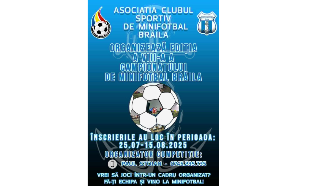 “Singura competiție oficială de minifotbal din județul nostru, organizată sub egida Federației Române de Minifotbal, de către Asociația Clubul Sportiv de Minifotbal Brăila, va începe la data de 31 august 2025.