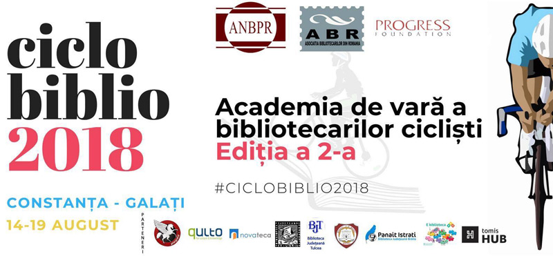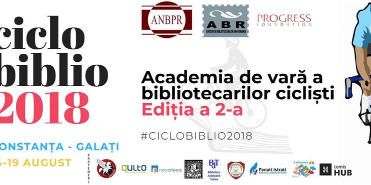 În perioada 14 – 19 august 2018 se desfăşoară a doua ediţie a Academiei de vară a bibliotecarilor ciclişti #cicloBiblio2018. Timp de şase zile, bibliotecari şi prieteni ai bibliotecilor vor pedala împreună, roată la roată, de la Constanţa la Galaţi. Traseul pitoresc măsoară 350 km şi dezvăluie participanţilor cultura şi tradiţia românească din zona Dobrogei.