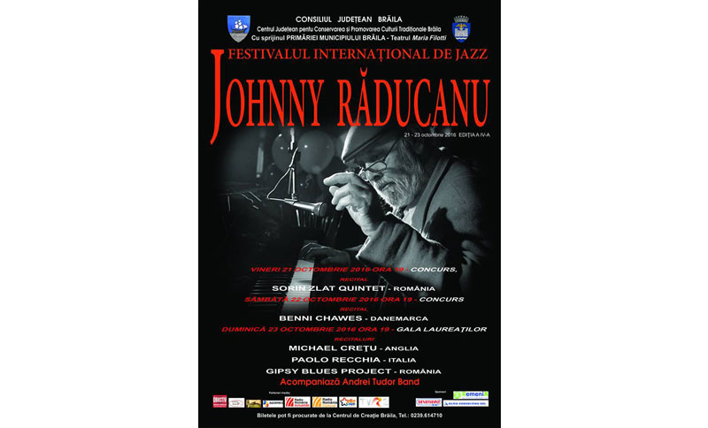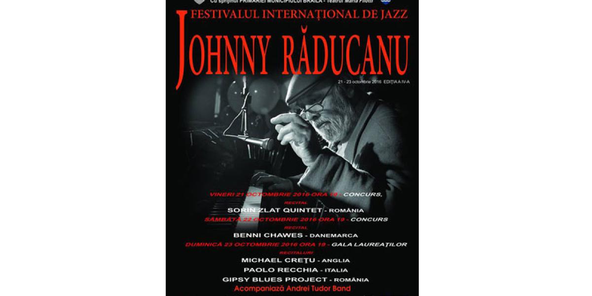 În perioada 21-23 octombrie 2016, Brăila găzduieşte cea de a IV-a ediţie a Festivalului Internaţional de Jazz “Johnny Răducanu”. Manifestarea este organizată de Consiliul Judeţean Brăila, Centrul pentru Conservarea şi Promovarea Culturii Tradiţionale Brăila, cu sprijinul Primăriei Municipiului Brăila şi al Teatrului “Maria Filotti”, unde se va desfăşura concursul şi vor fi susţinute recitalurile din acest an. Festivalul va începe în fiecare seară la ora 19.00, fiind deschis de către participanţii înscrişi în concurs şi va continua cu recitaluri de excepţie ale unor artişti români şi străini.