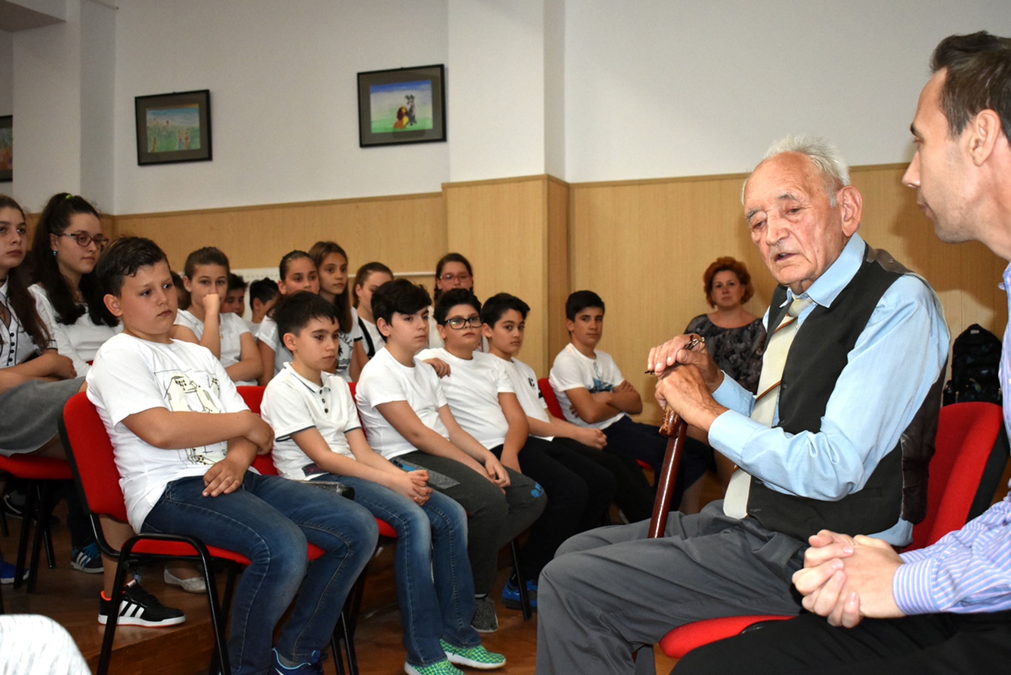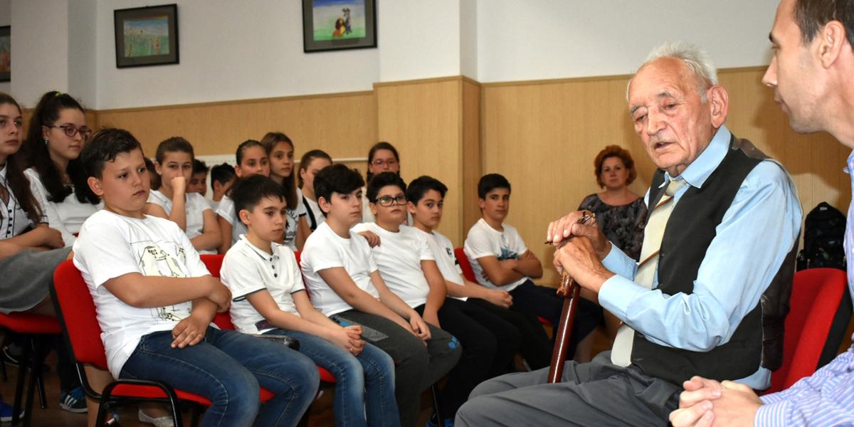 • militarii Flotilei Fluviale au avut iniţiativa de a facilita întâlnirea dintre un veteran de război, acum în vârsă de 96 de ani, cu elevii clasei a V-a din cadrul Şcolii “Fănuş Neagu” • ora cu poveşti s-a scurs prea repede, lăsându-i pe copii dornici de o nouă întâlnire, pentru a auzi şi alte întâmplări din viaţa bătrânului veteran