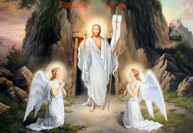 “După ce a trecut sâmbăta, când se lumina de ziua întâi a săptămânii (Duminică), au venit Maria Magdalena şi cealaltă Marie, ca să vadă mormântul. Şi iată s-a făcut cutremur mare, că îngerul Domnului, coborând din cer şi venind, a prăvălit piatra şi şedea deasupra ei. Şi înfăţişarea lui era ca fulgerul şi îmbrăcămintea lui albă ca zăpada. Şi de frica lui s-au cutremurat cei ce păzeau şi s-au făcut ca morţi. Iar îngerul, răspunzând, a zis femeilor: Nu vă temeţi, că ştiu că pe Iisus cel răstignit Îl căutaţi. Nu este aici; căci S-a sculat precum a zis; veniţi de vedeţi locul unde a zăcut. Şi degrabă mergând, spuneţi ucenicilor Lui că S-a sculat din morţi şi iată va merge înaintea voastră în Galileea; acolo Îl veţi vedea. Iată v-am spus vouă.