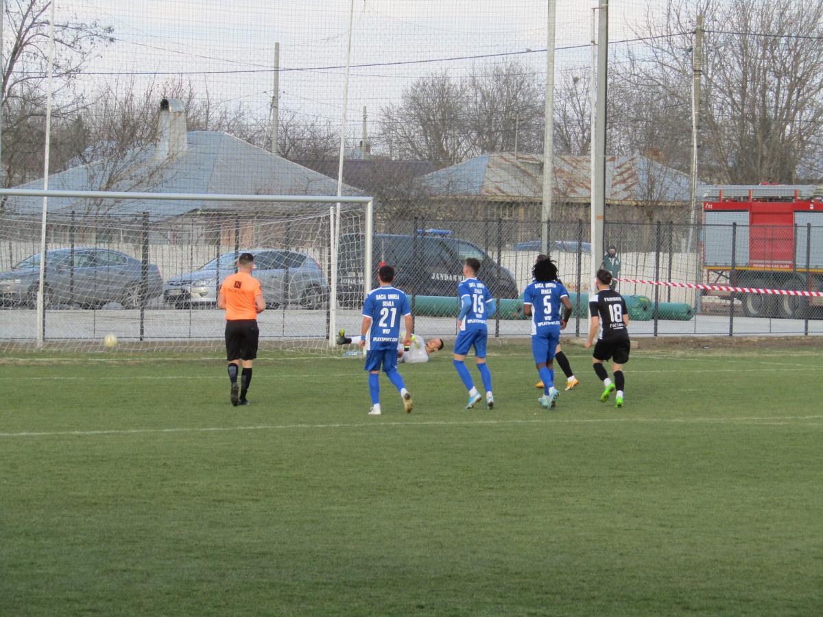 Formația brăileană a fost ceva mai activă pe finalul primei reprize, a obținut o lovitură liberă după un fault asupra lui Patrick Petre, Vîlceanu a centrat în fața porții iar Paliu a împins mingea în plasă. La pauză, Dacia Unirea era condusă cu 2-1 iar speranțele într-un rezultat pozitiv păreau încă reale.