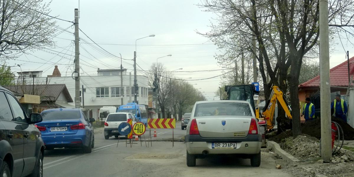 • de câteva săptămâni, circulaţia auto pe Calea Galaţi, de la podul Brăiliţa până în cartierul Vidin, se desfăşoară cu mare dificultate, din cauza şanţurilor săpate transversal pe carosabil • şoferii îi acuză pe muncitori că nu astupă măcar superficial aceste şanţuri • lucrarea este derulată de CUP “Dunărea”, care racordează pe cheltuială proprie toate casele de pe Calea Galaţi la reţelele de apă şi canalizare, înainte de a se reface covorul asfaltic de pe stradă