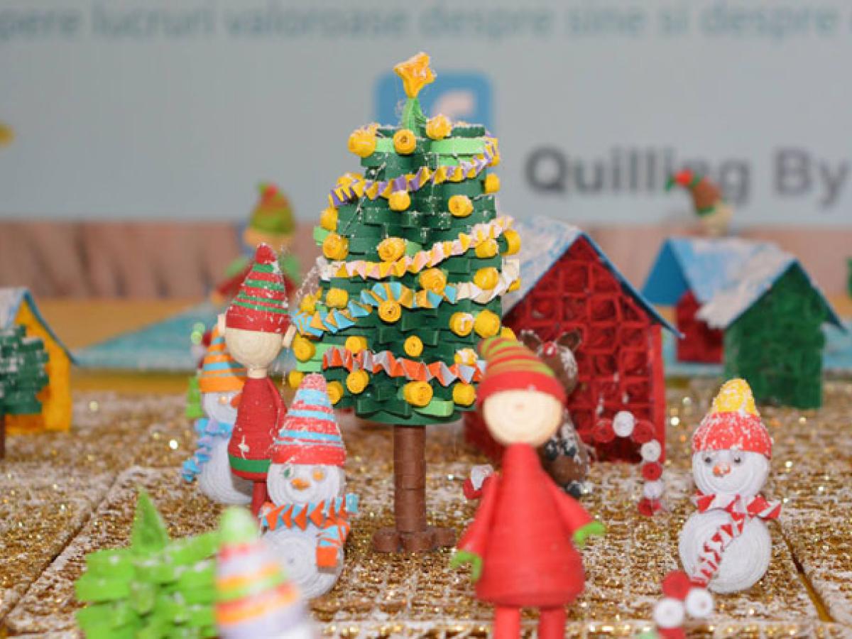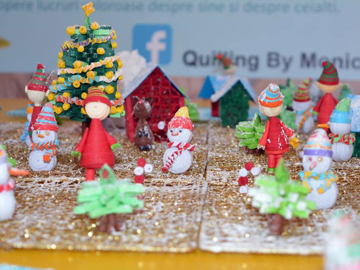 Pe lângă expoziţia cu vânzare, elevii au realizat şi un adevărat Orăşel de Zăpadă în miniatură. Braduţi, căsuţe, oameni de zăpadă sau spiriduşi sunt doar câteva dintre elementele create de copii în cadrul atelierelor de quilling.
