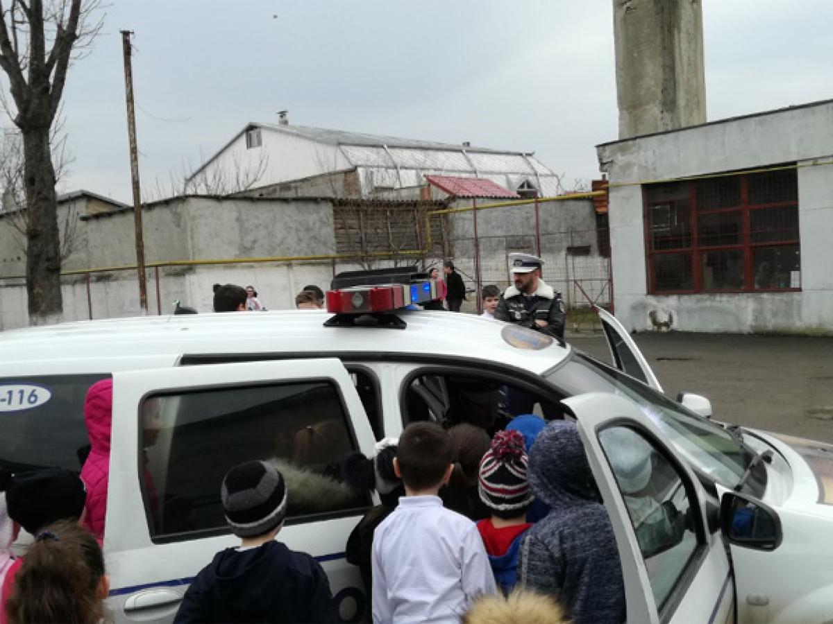 Poliţişti de la compartimentul Analiza şi Prevenirea Criminalităţii şi Biroul Rutier au făcut echipă pentru a-i învăţa pe elevii de clasa a I-a ABC-ul circulaţiei în siguranţă şi a le arăta importanţa respectării regulilor de circulaţie. Poliţiştii le-au explicat copiilor pe care parte a drumului public au voie să se deplaseze, pe unde pot traversa strada, fiindu-le prezentată trecerea de pietoni, ce trebuie să facă pentru a nu fi implicaţi în accidente. Ei au aflat care este rolul semaforului şi diferenţa dintre cel pentru pietoni şi cel pentru autovehicule. Micuţii au aflat şi cum trebuie să procedeze atunci când se deplasează cu mijloace de transport în comun, sau atunci când sunt pasageri în autoturisme.