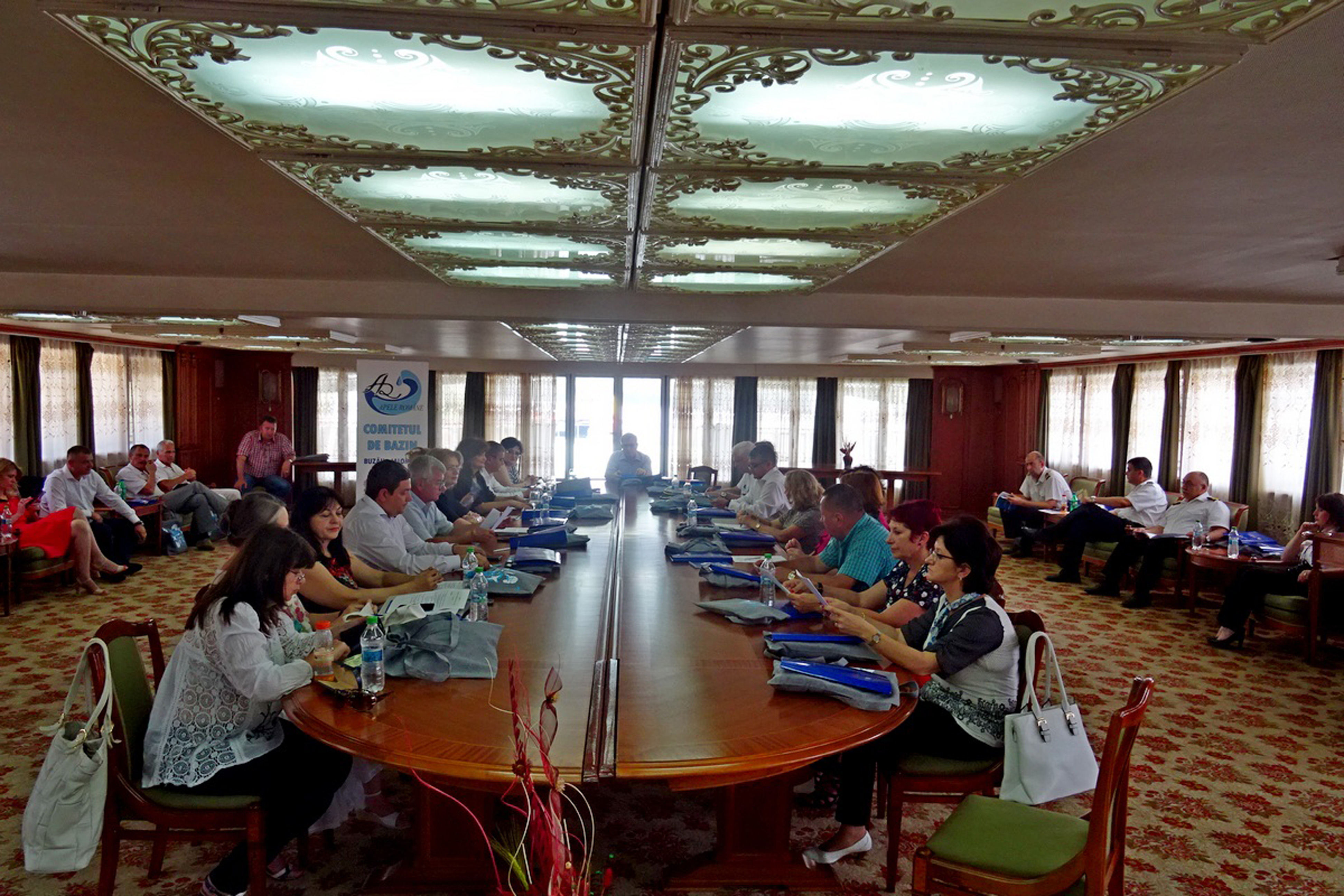 Directorii Administraţiilor Bazinale de Apă din toată ţara s-au aflat, ieri, la Brăila, pentru a participa la un eveniment dedicat sărbătoririi Zilei Dunării. Evenimentul a fost organizat în premieră în oraşul nostru, iar Sistemul de Gospodărire a Apelor Brăila s-a străduit să fie o gazdă cât mai bună. La iniţiativa directorului Adrian Turiac, şedinţa propriu-zisă s-a desfăşurat la bordul navei de comandament “Mureş”, iar participanţii au fost încântaţi să poată vedea de aproape palatul plutitor construit în anii '80 pentru Nicolae Ceauşescu.