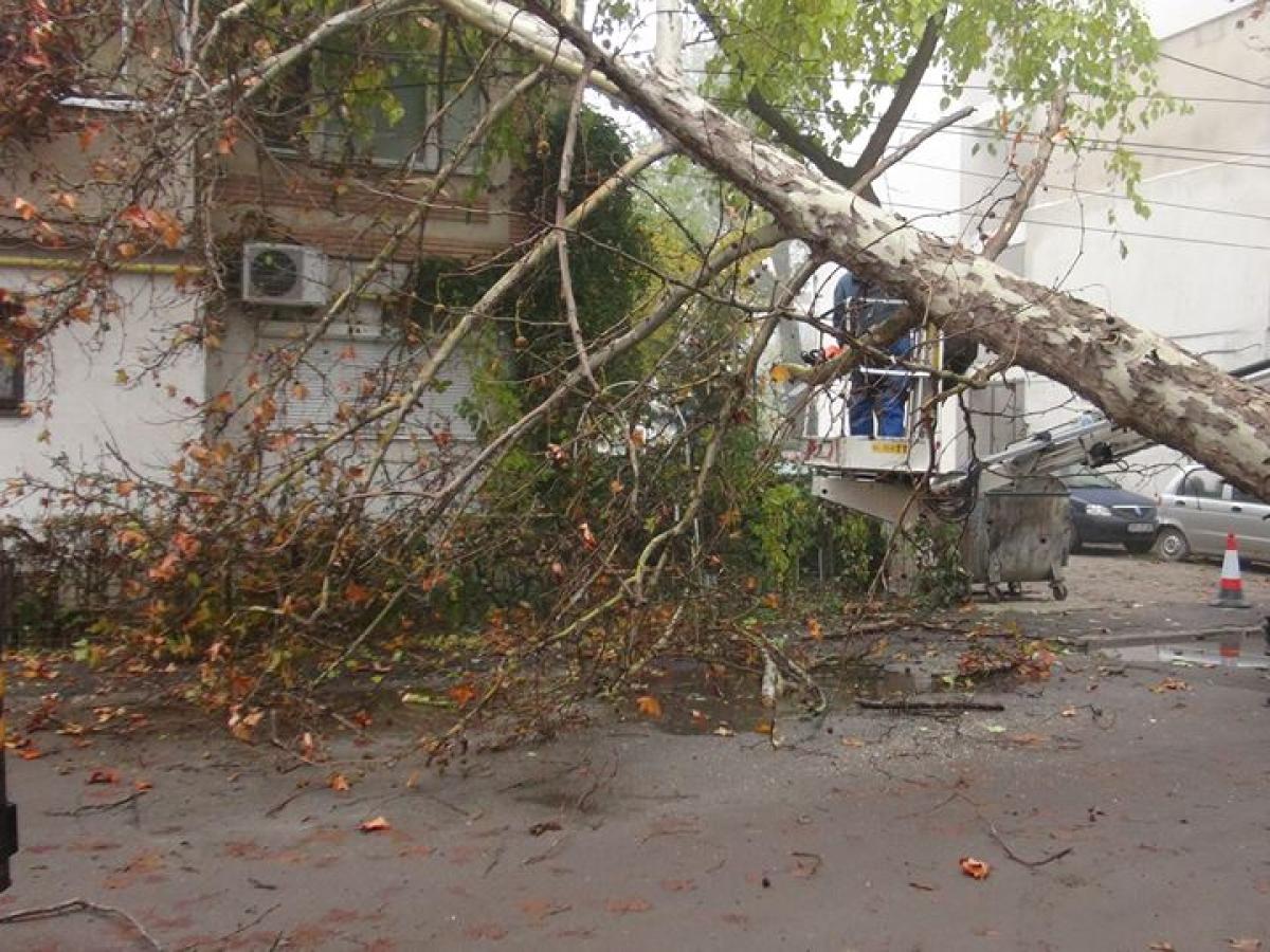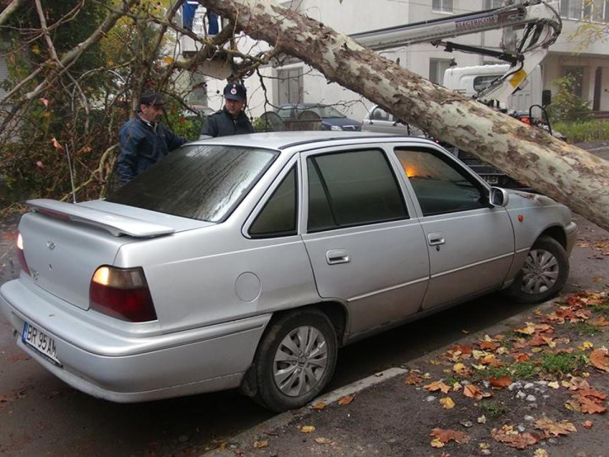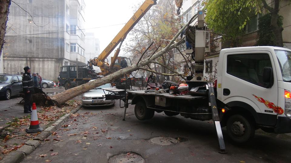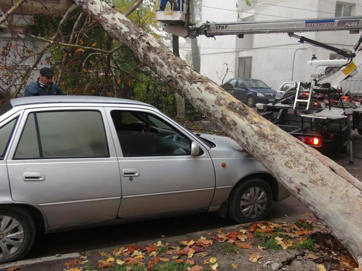 Un platan a căzut în jurul orei 6,30 peste o maşină parcată în faţă blocului, iar crengile au ajuns până la etajul 3. Din fericire nu au fost decât pagube materiale. Pomul a căzut în spatele unei maşini de gunoi, deşi nu a fost uscat şi nu a bătut vântul. Din spusele angajaţilor SEROMPLANT, se pare că principala cauza a fost şanţul săpat în urmă cu 4 ani pentru instalaţia de gaze, în urmă căruia, platanul a rămas fără rădăcini. Proprietarul maşinii nu ştie momentan ce trebuie să facă pentru a-şi recupera paguba.