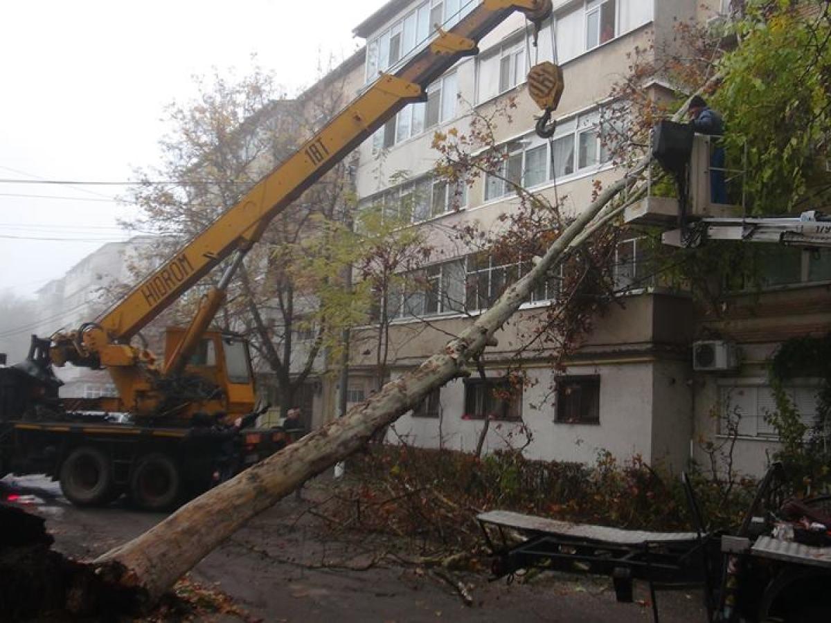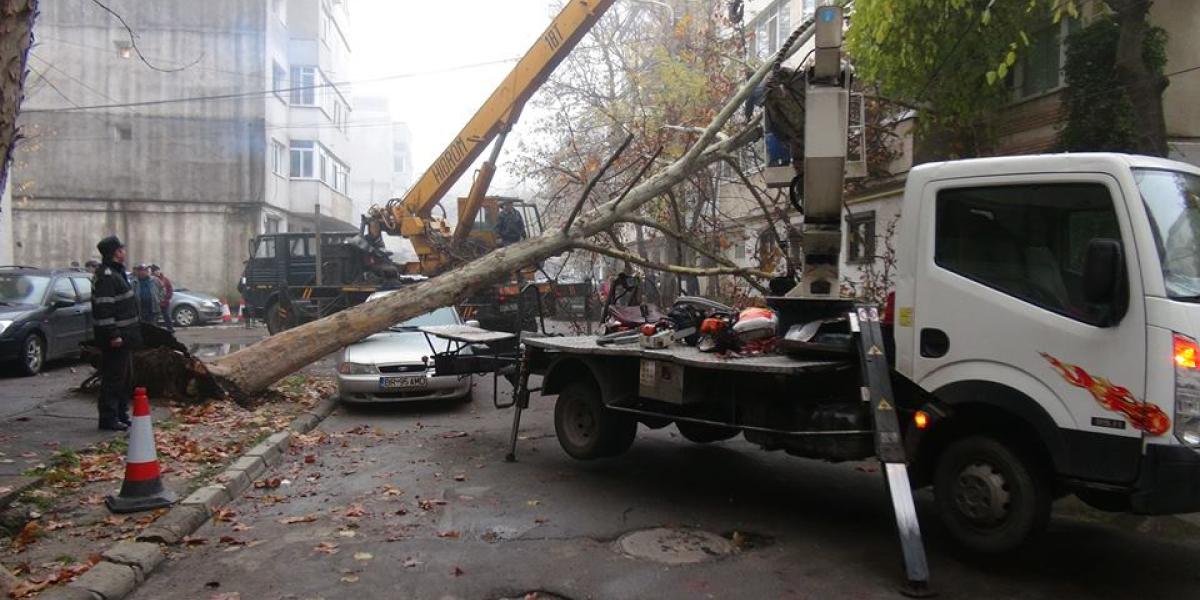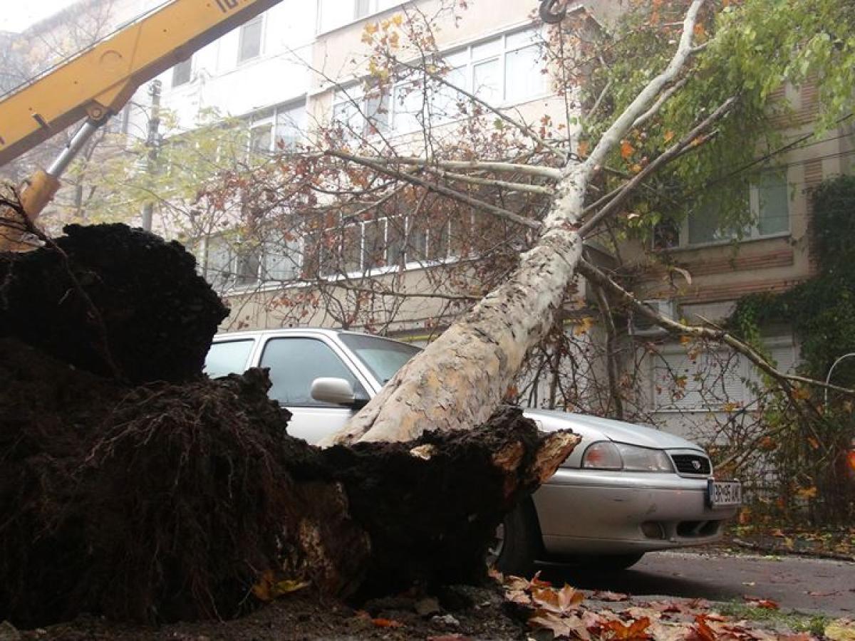 Un platan a căzut în jurul orei 6,30 peste o maşină parcată în faţă blocului, iar crengile au ajuns până la etajul 3. Din fericire nu au fost decât pagube materiale. Pomul a căzut în spatele unei maşini de gunoi, deşi nu a fost uscat şi nu a bătut vântul. Din spusele angajaţilor SEROMPLANT, se pare că principala cauza a fost şanţul săpat în urmă cu 4 ani pentru instalaţia de gaze, în urmă căruia, platanul a rămas fără rădăcini. Proprietarul maşinii nu ştie momentan ce trebuie să facă pentru a-şi recupera paguba.