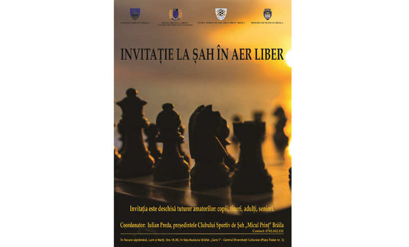 Invitația la șah în aer liber este adresată tuturor amatorilor - copii, tineri, adulți și seniori - iar partidele de șah se desfășoară în fiecare luni și marți, de la ora 18.00. Coordonator al acestei inedite activități este Iulian Preda, președintele Clubului Sportiv „Micul Prinț” Brăila, un vechi colaborator al Muzeului Brăilei „Carol I”.