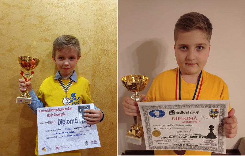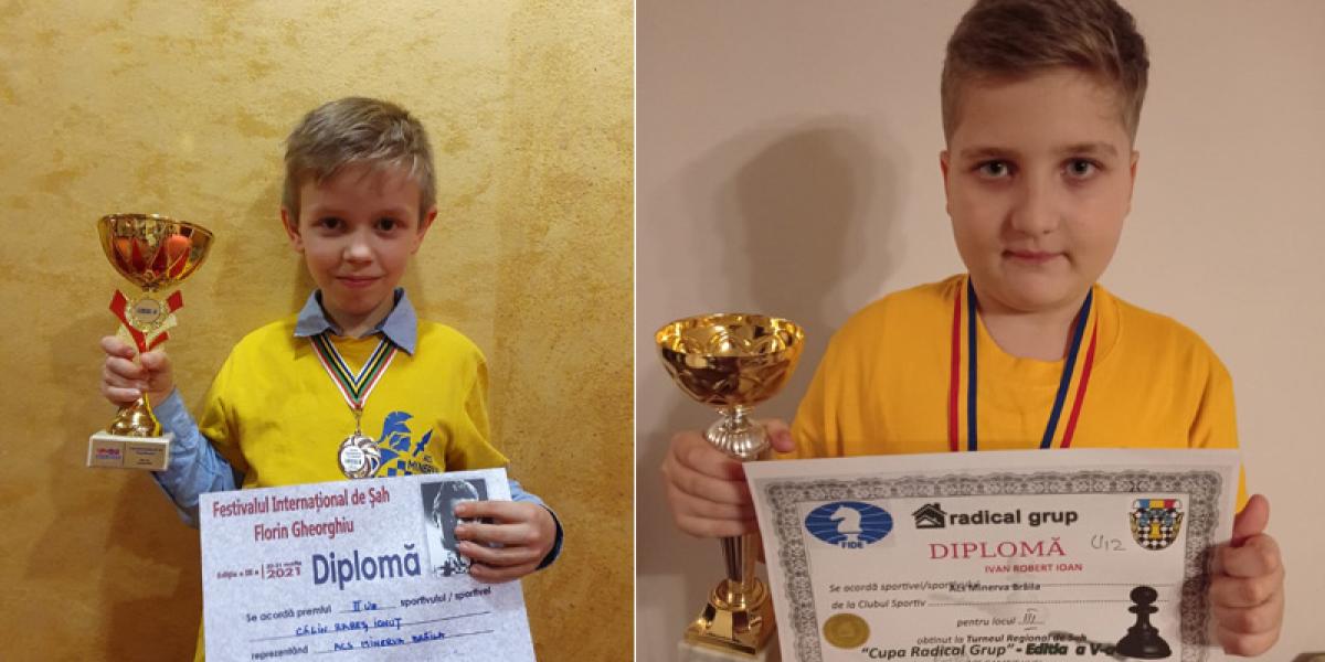 Doi jucători de la clubul de șah Minerva Brăila, Rareș Călin și Robert Ivan, pregătiți de Iulian Zanfir, s-au clasat pe podium la concursurile la care au participat în această lună.