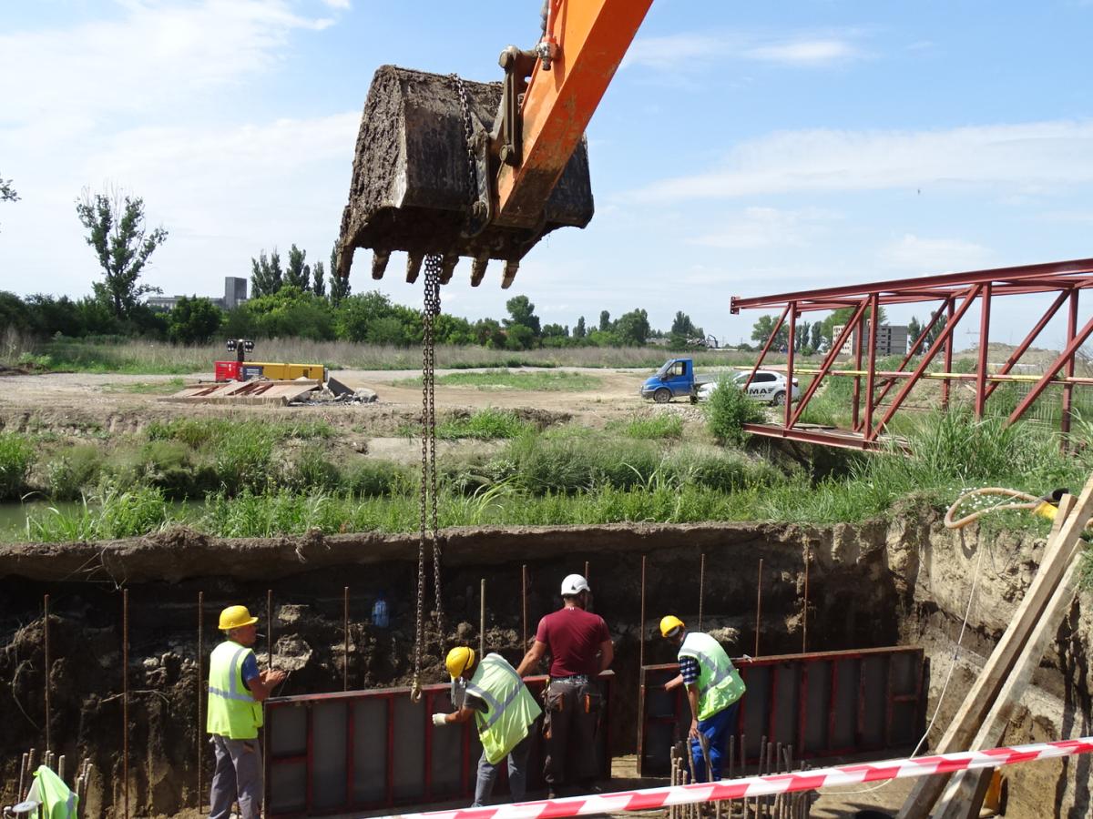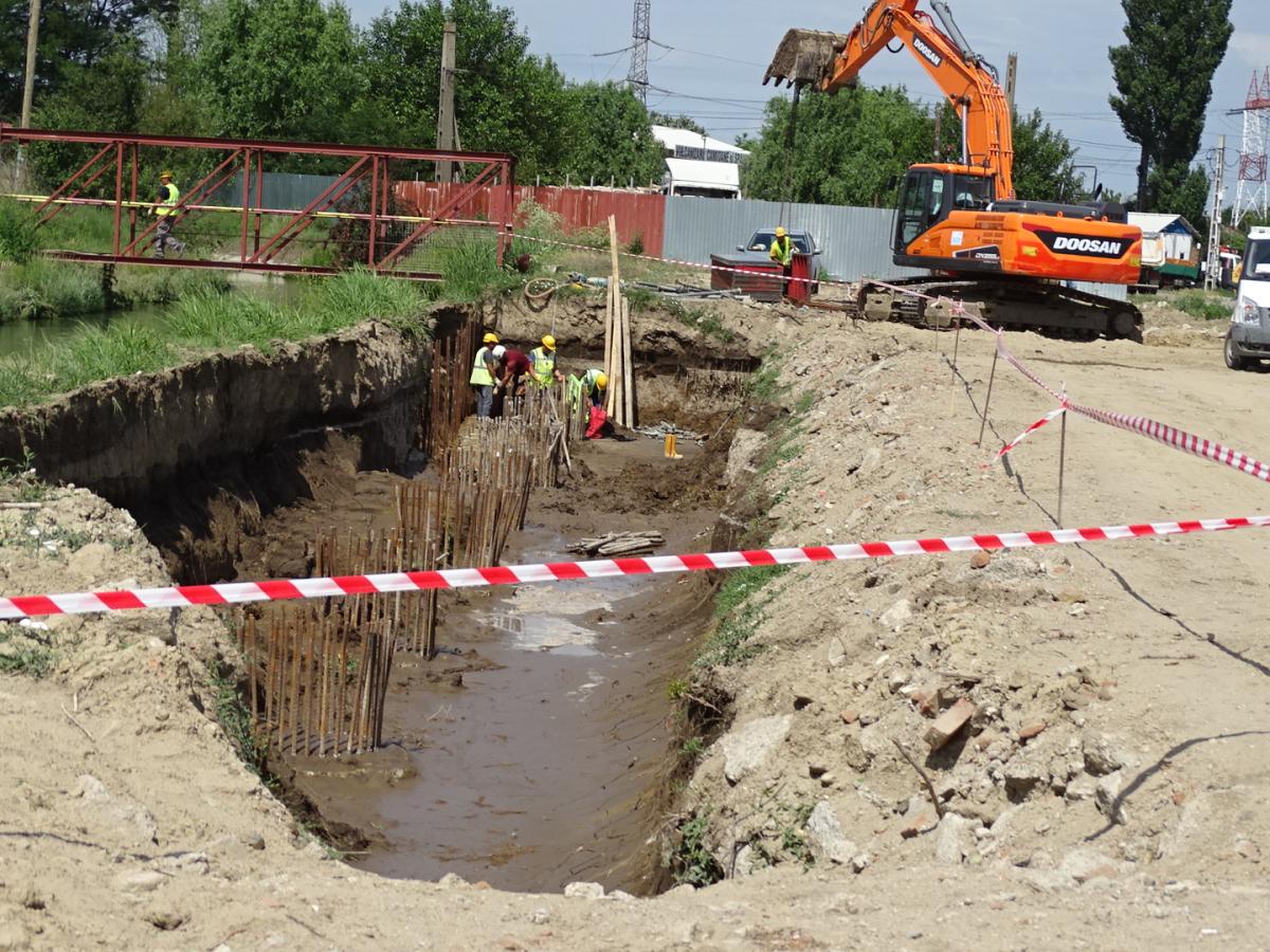 Dincolo de aceste aspecte de apreciat, am întâlnit şi două situaţii aparte. Una chiar dificilă, deoarece ploile căzute au făcut să apară băltiri în zona pilonilor din apropierea canalului CA2, fostul cămin ITA şi Calea Galaţi. Aşa că pentru stoparea surpării malului s-a trecut, în condiţii foarte grele, la consolidarea cu palplanşe metalice. De ce nu s-a prevăzut acest lucru, inclusiv trepidaţiile de la traficul auto greu (permanent şi infernal), nu ştim… Iar apropo de traficul auto, acesta poate afecta şi gropile superficial semnalizate şi neprotejate, de la reţeaua de apă; aflată lângă partea carosabilă! Oricum, constructorii recuperează din timp, dar mai este un aspect, chiar nedorit: grămezile uriaşe de pământ decopertat şi mai ales cu gunoaie, amestecate cu vegetaţie defrişată, materiale inerte, sobe de teracotă, fundații din beton spart, anvelope etc apărute la câţiva metri de canalul CA2 şi în zona de protecţie a acestuia. Ca și cum n-ar fi suficient că a apărut acolo unde nu este locul ei, halda de gunoi este completată permanent de diverşi cetăţeni sau angajați ai unor societăţi comerciale. Greu este, dar nu şi imposibil, să se stabilească dacă şi ce subcontractor a avut vreo “contribuţie” (prin organizarea de şantier) la această situaţie care afectează inclusiv mediul înconjurător. Dar aşa cum sublinia preşedinteleal Consiliului Judeţean, “este în răspunderea constructorului (n.n. şi nu numai) să scoată zona la lumină”. Ceea ce este de preferat să se întâmple acum, iar autorităţile de resort să impiedice stoparea aruncării de gunoi şi a tot felul de mizerii în perimetrul şi lângă organizarea de şantier.Şi nu în ultimul rând, este nevoie de bararea/paza accesului în zonă faţă de cei lipsiţi de bun simţ şi străini de activitatea constructorilor.
