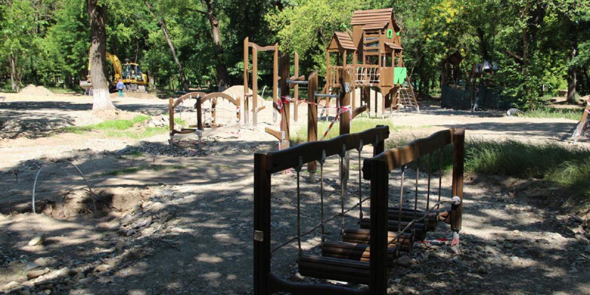 * primarul Marian Dragomir a vizitat, săptămâna aceasta, șantierul deschis la viitorul Orășel al Copiilor, proiect de 9,5 milioane de lei implementat în colaborare cu Consiliul Județean, cu termen de finalizare în martie 2023 * Orășelul Copiilor va include peste 4.000 mp de alei pietonale, peste 3.100 mp spații verzi, Skate Park, Bike Park, zone de recreere, Parc Dinamic, Fitness, zonă educațională, zone pentru copiii mici și mari cu echipamente de cățărat, tiroliană, leagăne și trambuline * "Montăm, deja, echipamente în zona Copiilor Mari. Urmează Zona Copiilor Mici", a spus reprezentantul "Sport Play" SRL Cluj, firma care instalează echipamentele
