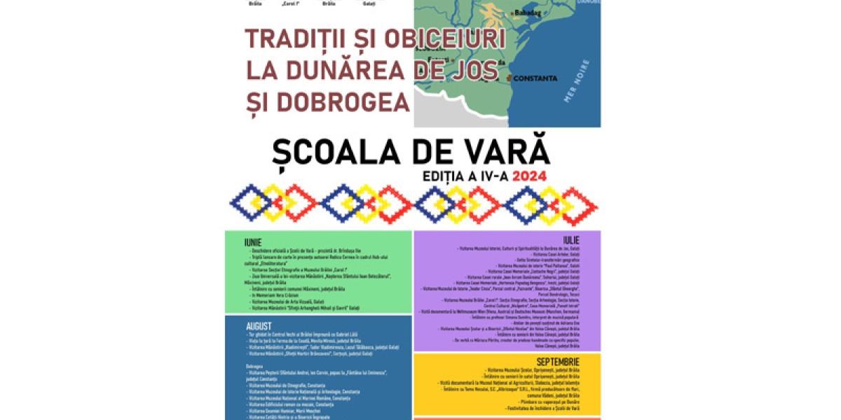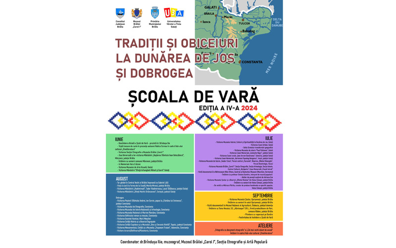 Muzeul Brăilei „Carol I” - Secția Etnografie și Artă Populară organizează, în perioada iunie - septembrie 2024, cea de a IV-a ediție a Școlii de Vară „Tradiții și obiceiuri la Dunărea de Jos și Dobrogea”, în colaborare cu Universitatea Vârstei a Treia Galați. Coordonator al activității este dr. Brîndușa Ilie, muzeograf în cadrul Secției Etnografie și Artă Populară a Muzeului Brăilei „Carol I”.