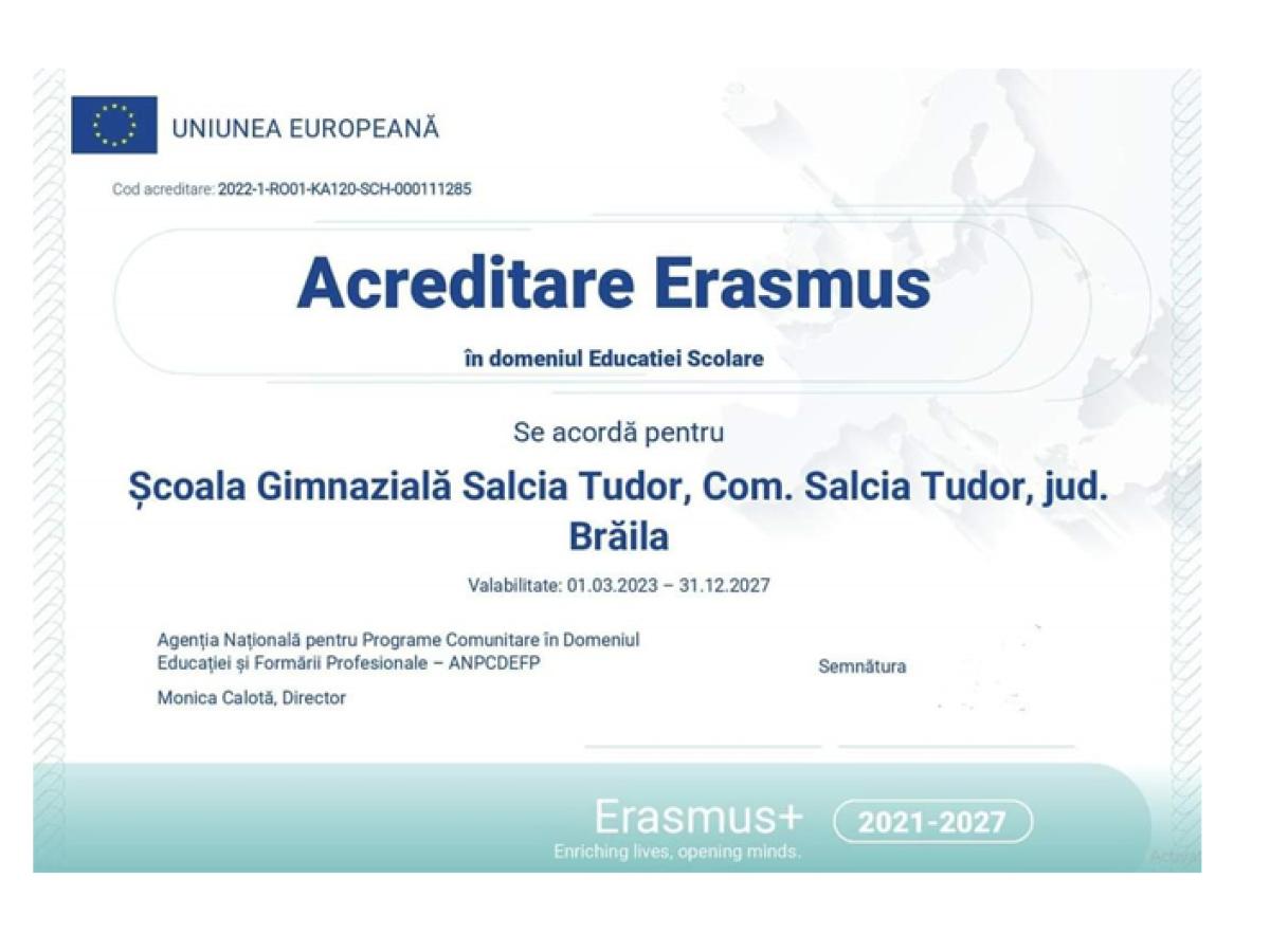 În cadrul acreditării Erasmus 2022-1-RO01-KA120-SCH-000111285 pe care o deține școala noastră, am implementat, în perioada iunie 2023-august 2024, Proiectul Erasmus+: 2023-1-RO01-KA121-SCH-0001316186 care vizează îmbunătățirea abilităților profesorilor și studenților noștri prin mobilitatea internațională. În acest prim an de implementare, prin Programul Erasmus+ cofinanțat de Uniunea Europeană, școala noastră a beneficiat de un grant de 20.080 euro, care ne-a permis să realizăm două mobilități importante: una pentru cadre didactice și una pentru elevi, ambele având o valoare semnificativă asupra dezvoltării profesionale și personale a participanților.