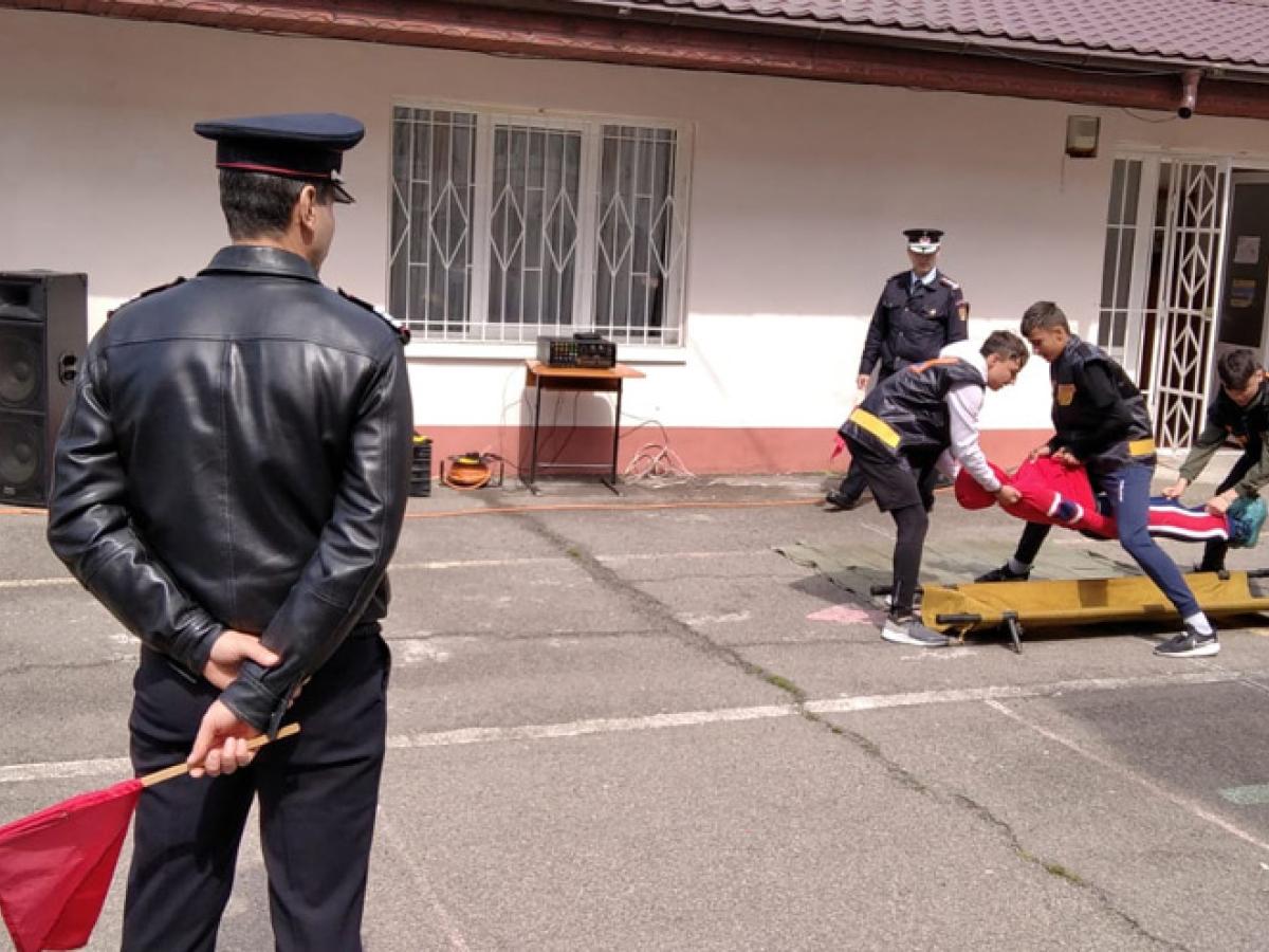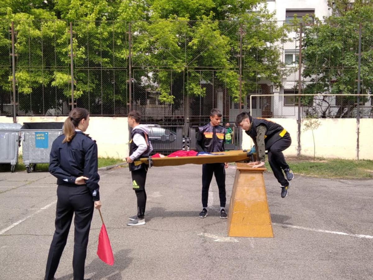 • faza județeană la concursul școlar ”Cu viața mea, apăr viața” s-a desfășurat la Școala Gimnazială ”Fănuș Neagu” din Brăila • concurenții s-au întrecut la o probă teoretică și la două probe practice: transportul asistat al unui accidentat așezat pe targă pe distanța de 50 m și deplasarea cu masca pe figură într-un raion cu obstacole, contaminat