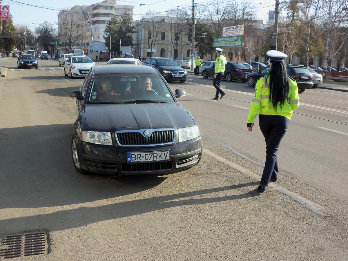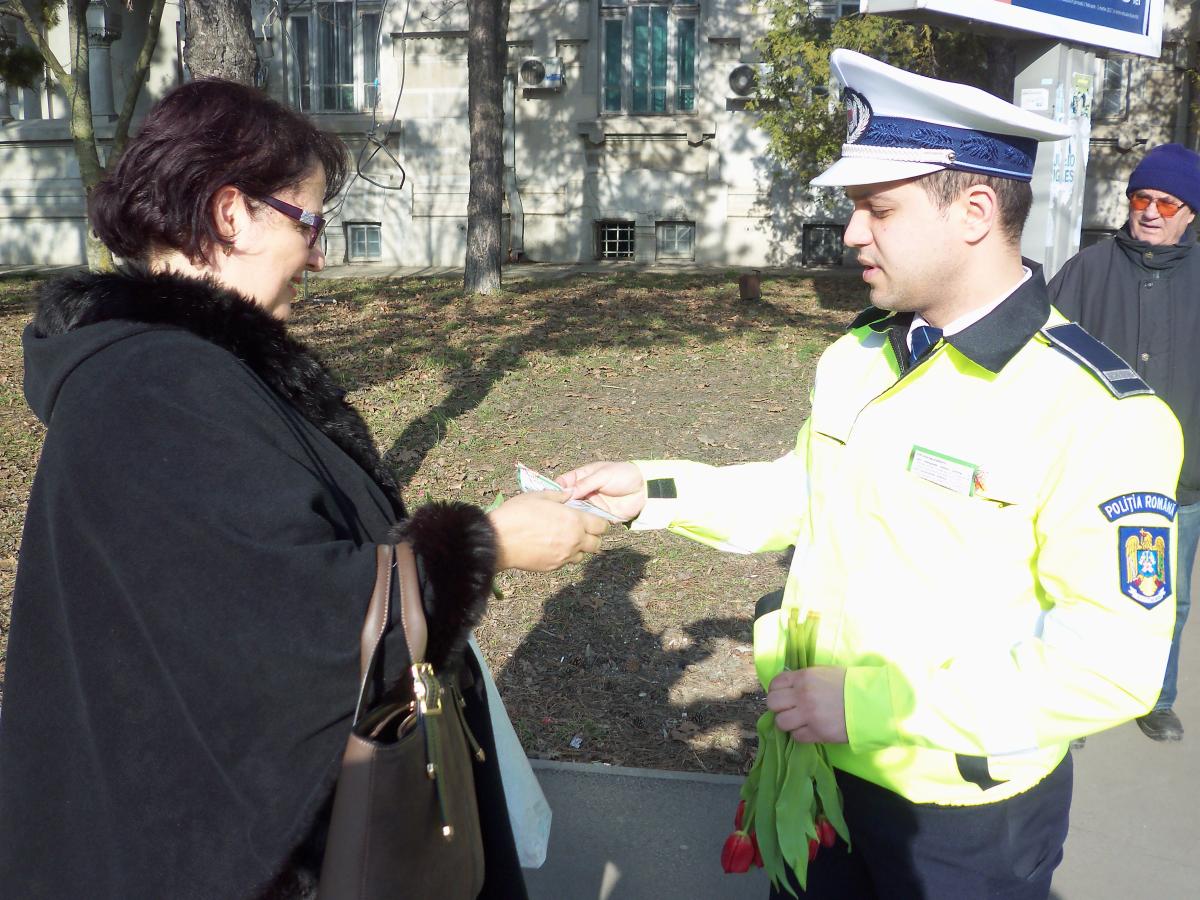 * astăzi, de 1 martie, polițiștii au ieșit în stradă și le-au spus ”Stop” brăilencelor aflate la volanul autoturismelor * au curs „amenzile”, șoferițele primind cu drag florile oferite de polițiști